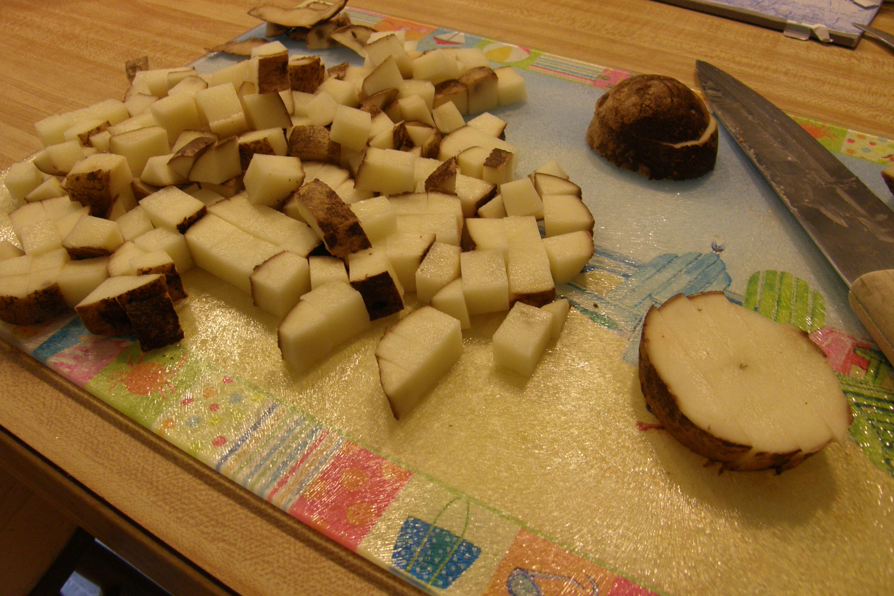 Hopefully, you can see what I mean. The picture above is actually the next step- cut the rounds into strips, then cut them in the opposite direction to create cubes.