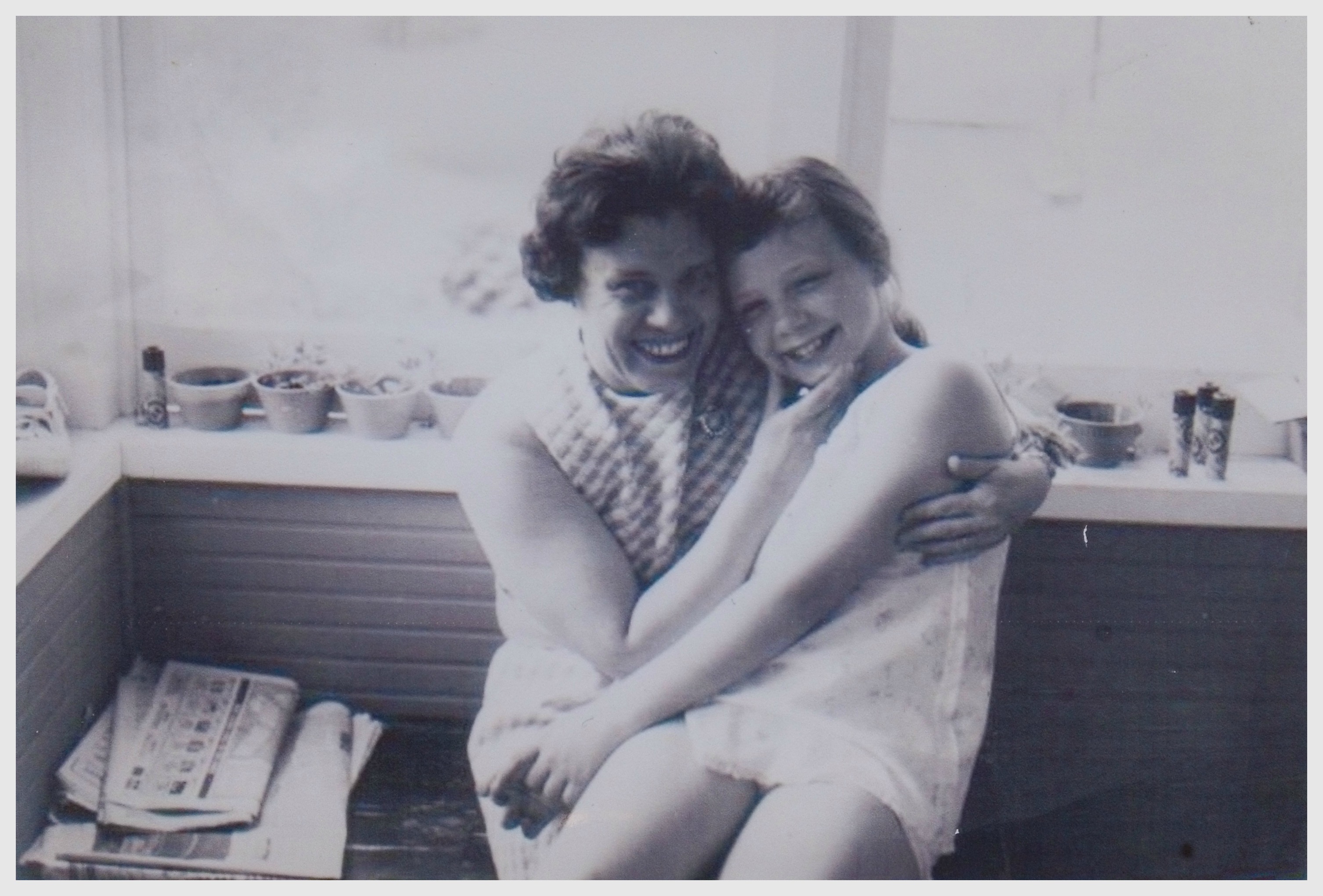 Note: I found the photo at top in one of my grandparents’ many photo albums this past summer. It is of my grandma (on the left) and mom (right), sitting on the back porch of the house my grandparents still live in. It is one of my very favorite photos. My mom would have been about 6.