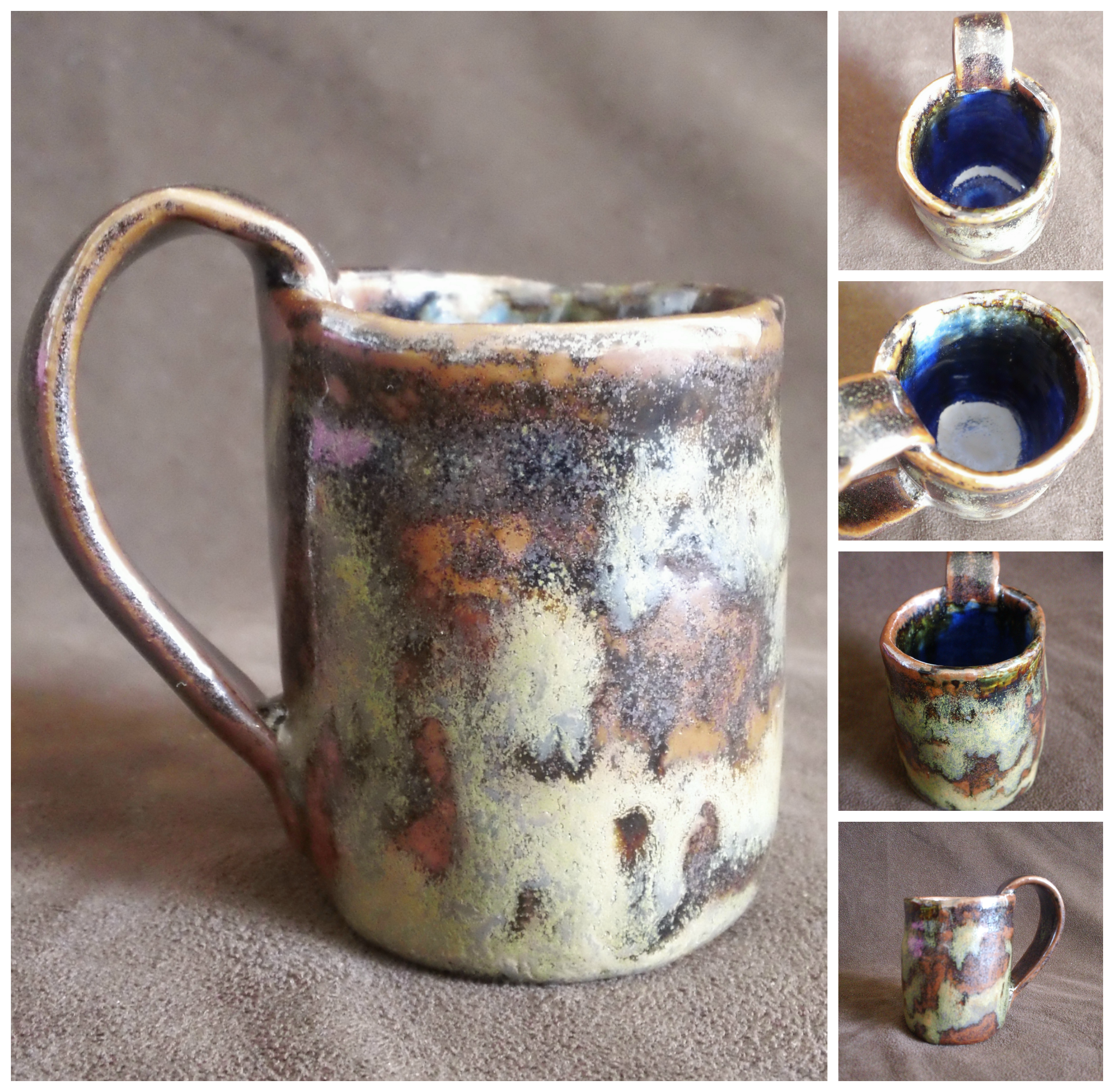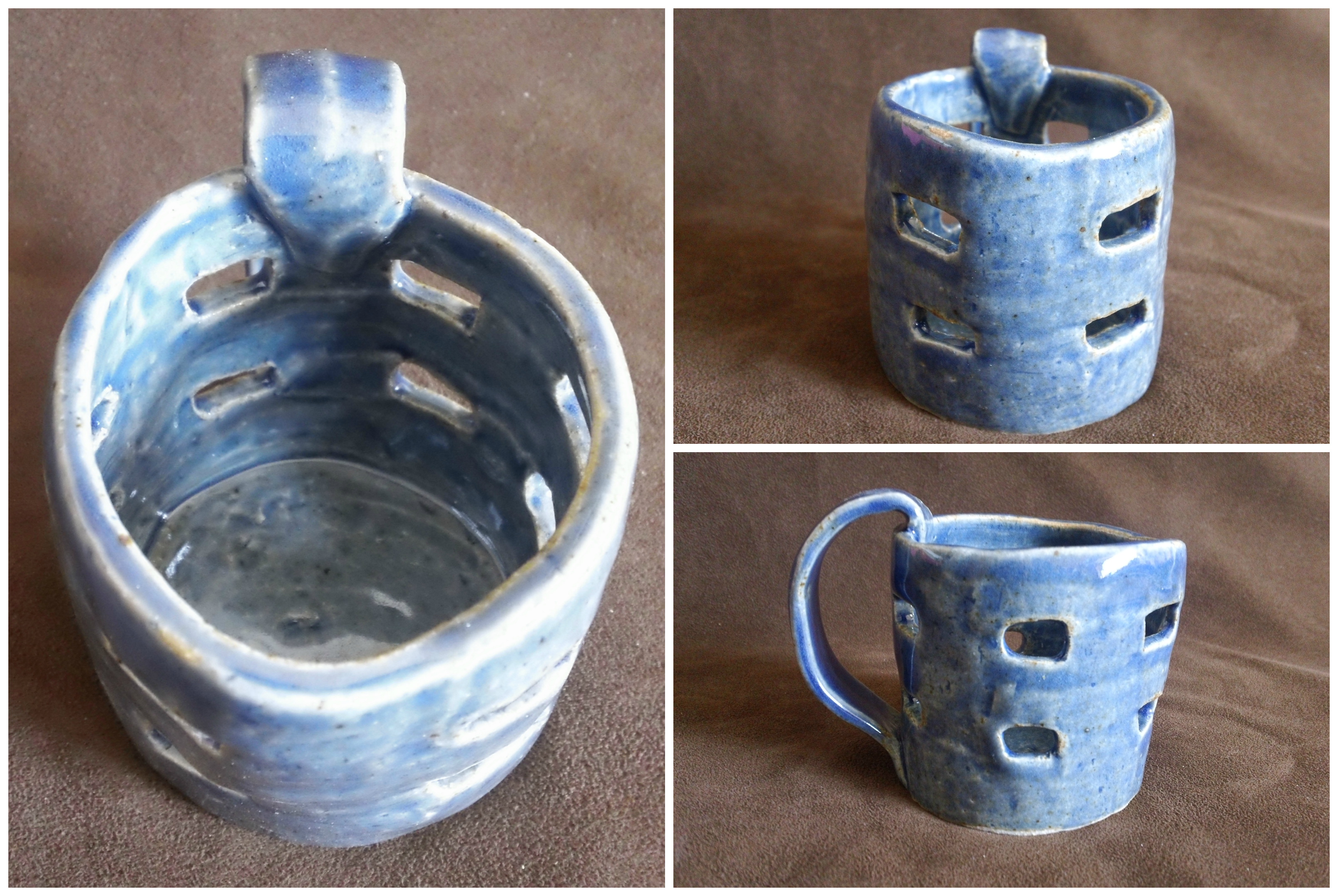 I’m really pleased with how everything turned out! These are all pretty small, the largest is only 3″ tall and the widest has a diameter of about 5″. The first six pieces (the first 6 collages above) were handcrafted, the final four were turned on the wheel. My favorites are the tiny mug (the 2nd from the top) and the shallow blue bowl (the last one above). I’m pretty sure I’m going to concentrate in Ceramics, so you will likely see a lot more of my ceramics from this point forward!