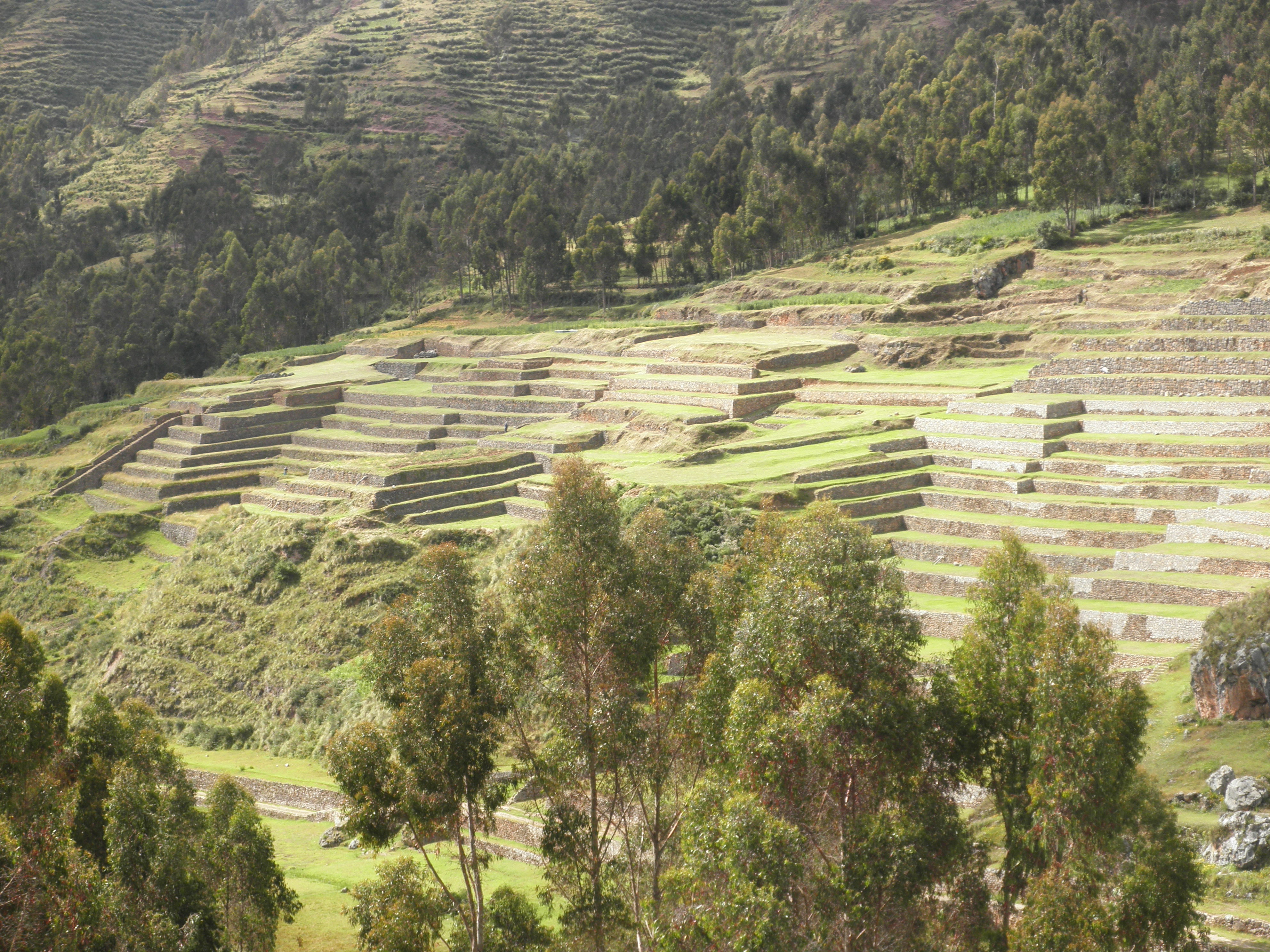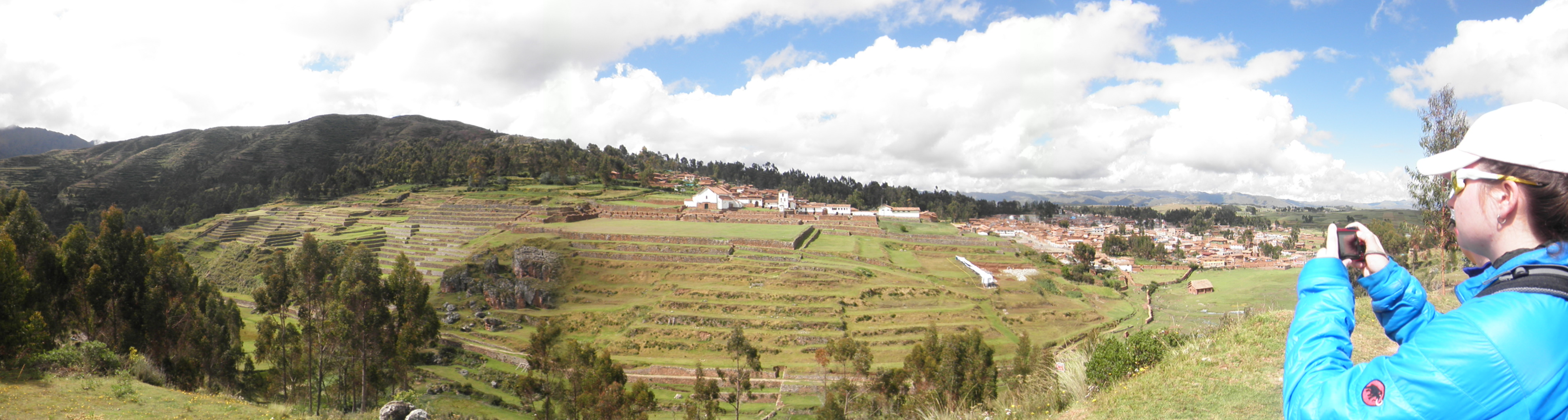 Our third day in Peru was yet another busy day. We started off the day with breakfast at the house (pancakes- they even had maple syrup!), then headed by bus to the Sacred Valley. Our first stop was in Chinchero, a town and Inca site. Here, we viewed some ruins that were, for the most part, not destroyed by the Spaniards. Instead, the Spanish just built upon the Inca structures. There is a very famous Spanish church here that is built on to Inca ruins. According to our guide, Daniel, this is a very popular place for weddings and such. I can see why- the site is gorgeous. There were a number of terraces, which the Incas used to grow crops.