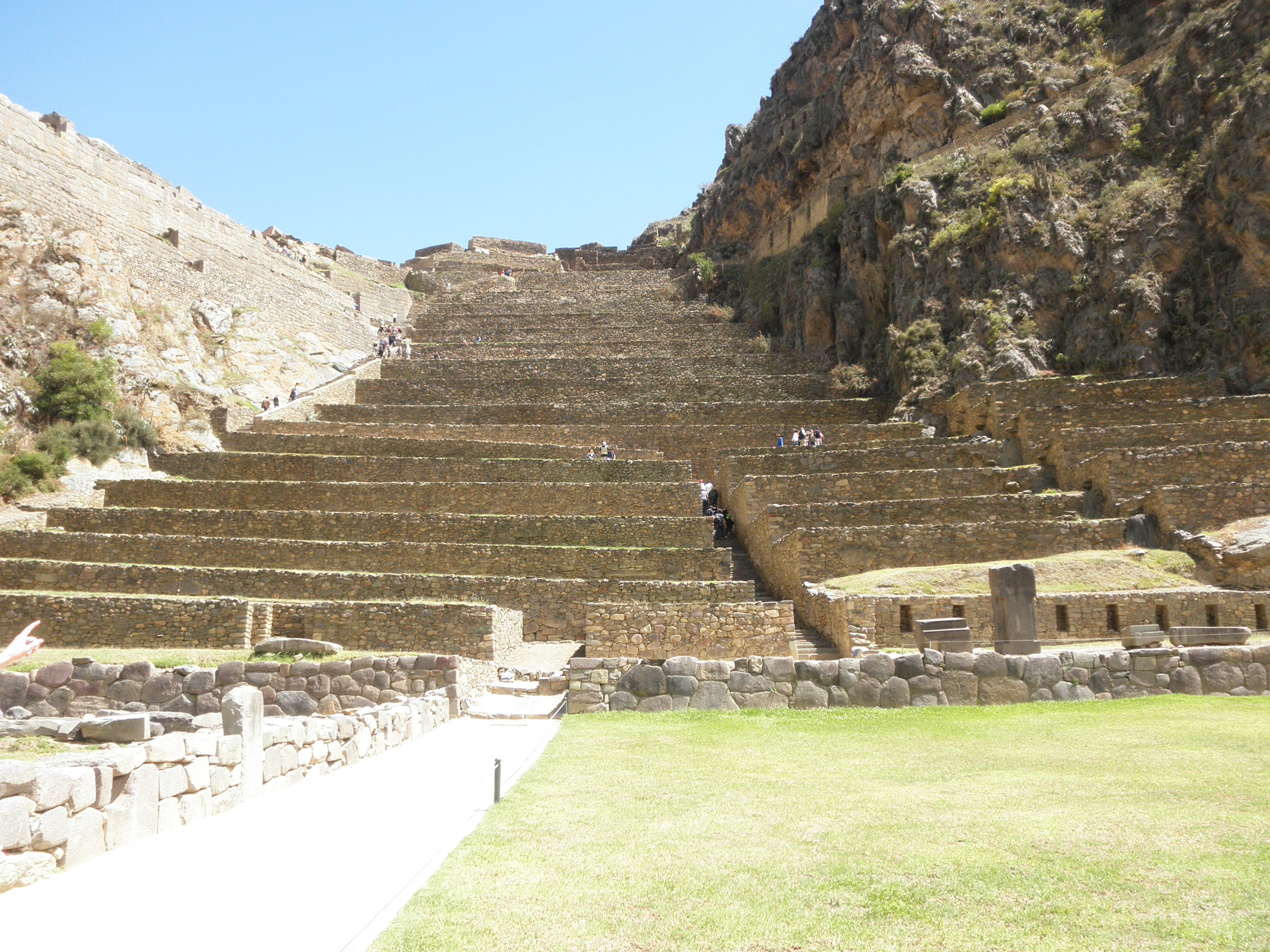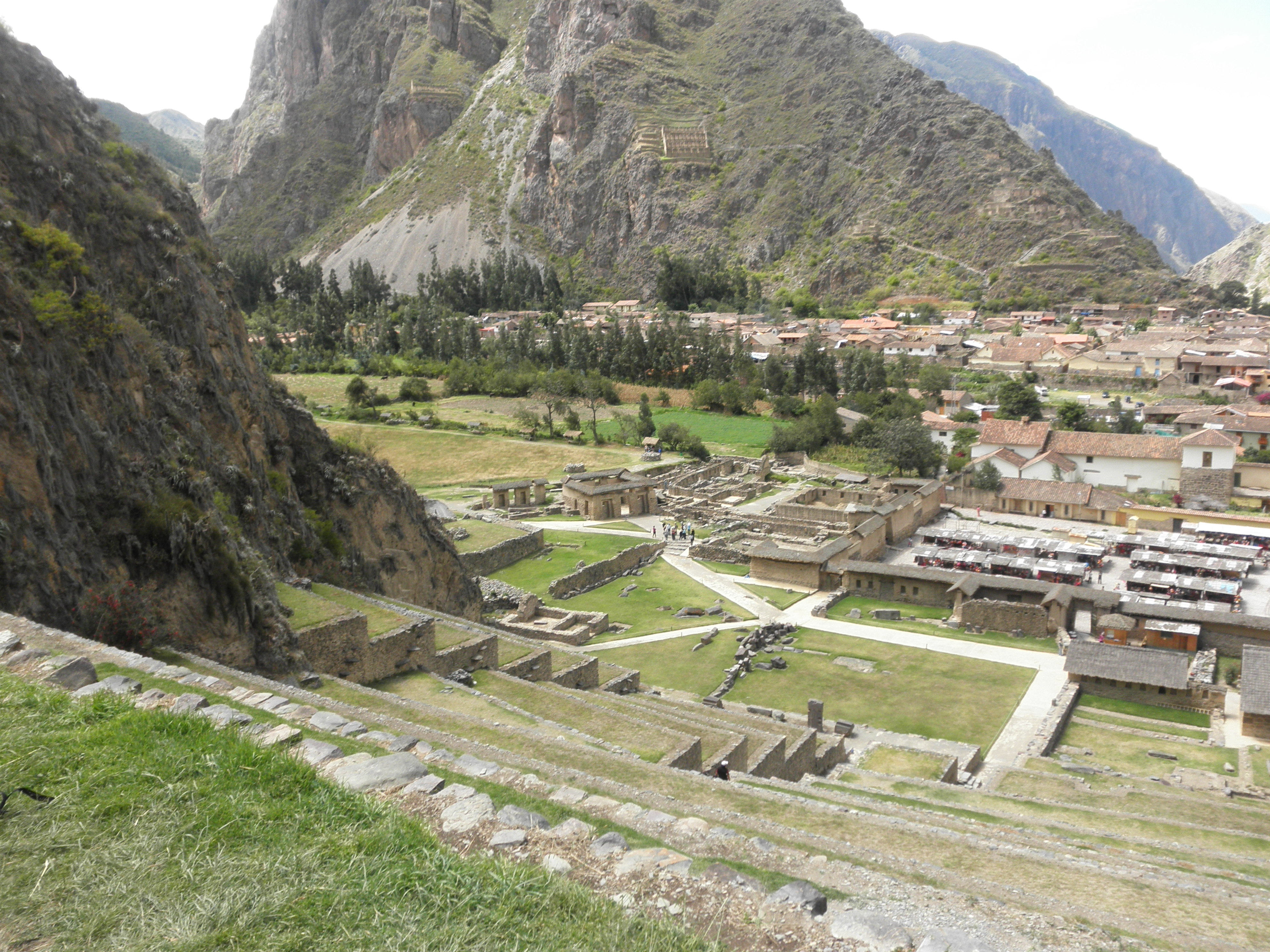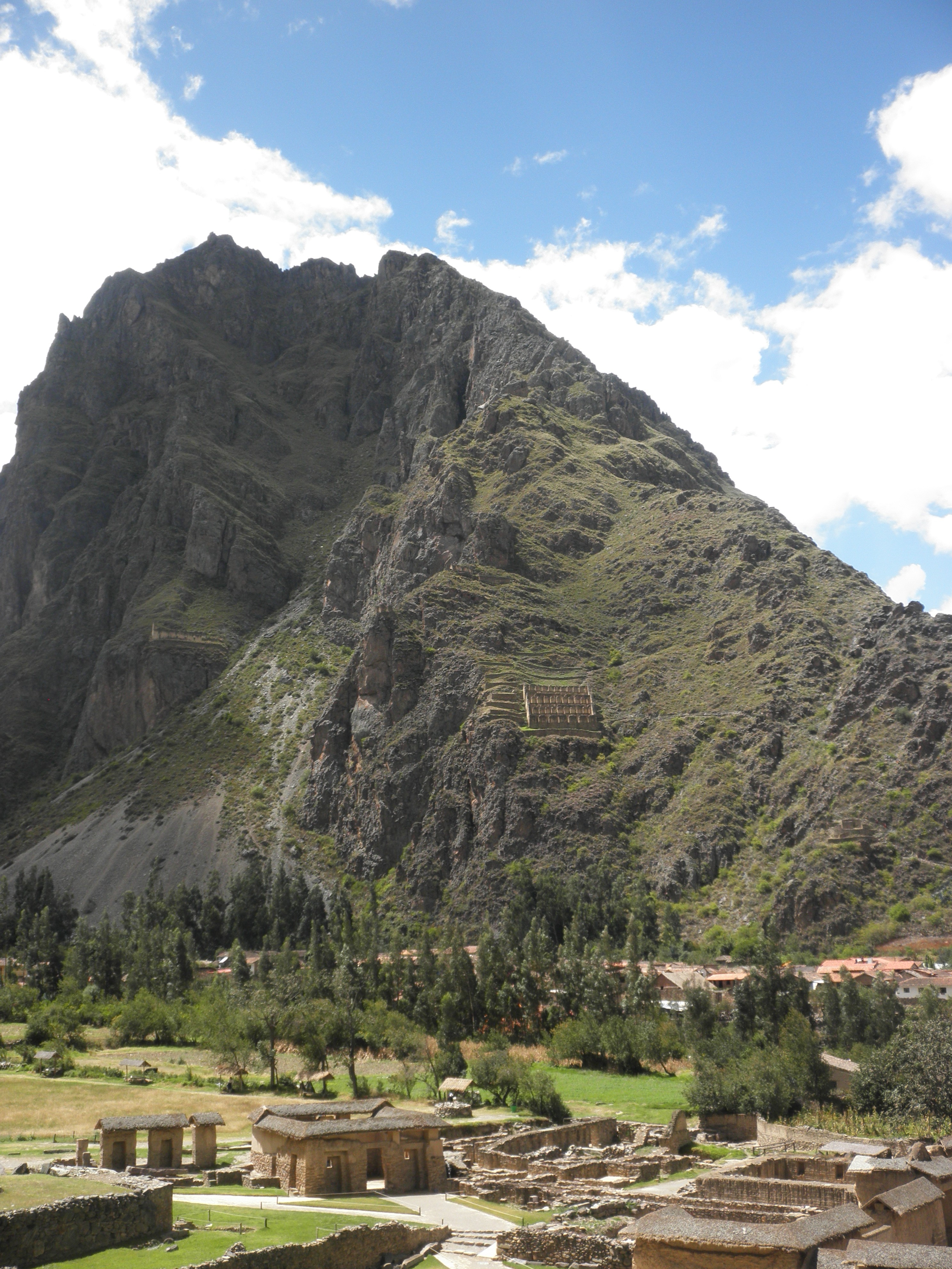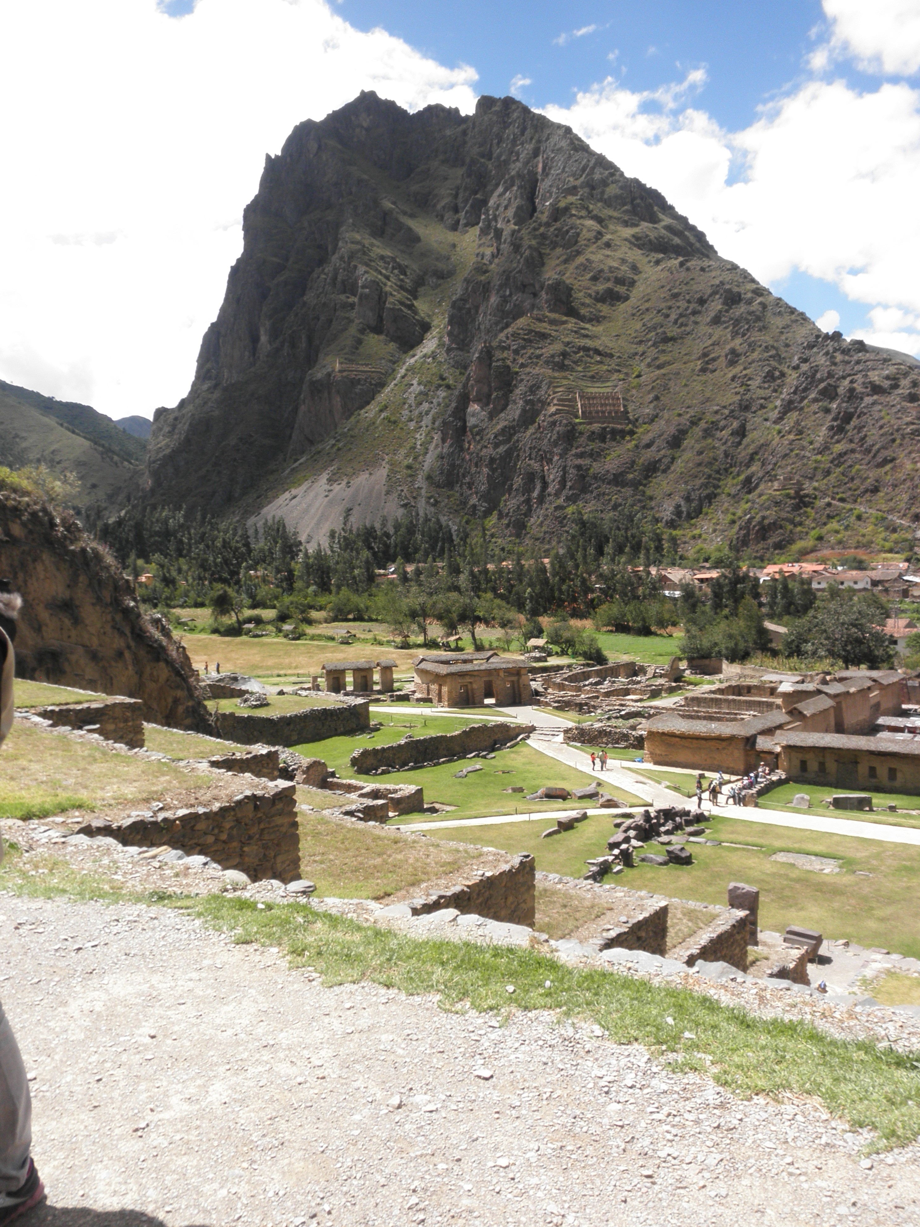 We then headed on to Ollantaytambo, which was about an hour drive. This was a very important Inca site and, unlike Machu Picchu, a lot is known about the history of the town. It is also an Inca town that the Spanish mostly left untouched. There is also a modern town there. Daniel, our guide, described how the Incas created terraces and how they used these terraces to grow a wide variety of produce. They would experiment by first planting things on the first terrace and then gradually move them upward, allowing them to grow things at a much higher altitude than normal. We walked up the steps to the top of the terraces (up 230 feet!), where there were several buildings. It was a bit of a difficult climb. The buildings at the top were temples and religious buildings. Across the valley, we could see the granaries where the Incas stored their food. The granaries were located in a place that got little sun, allowing the food to stay cool throughout the year. Down below, the remnants of the Inca village remain. The village mostly functioned as a place for travelers to Cusco to stay on their journey, and it was also a place where royalty lived. The town was divided into two sections: one for the royalty and priests and one for the regular people. We walked across a path and descended a second set of terraces. At the bottom, there was a temple of water, with two fountains: one for girls and one for boys. It was a really gorgeous site.