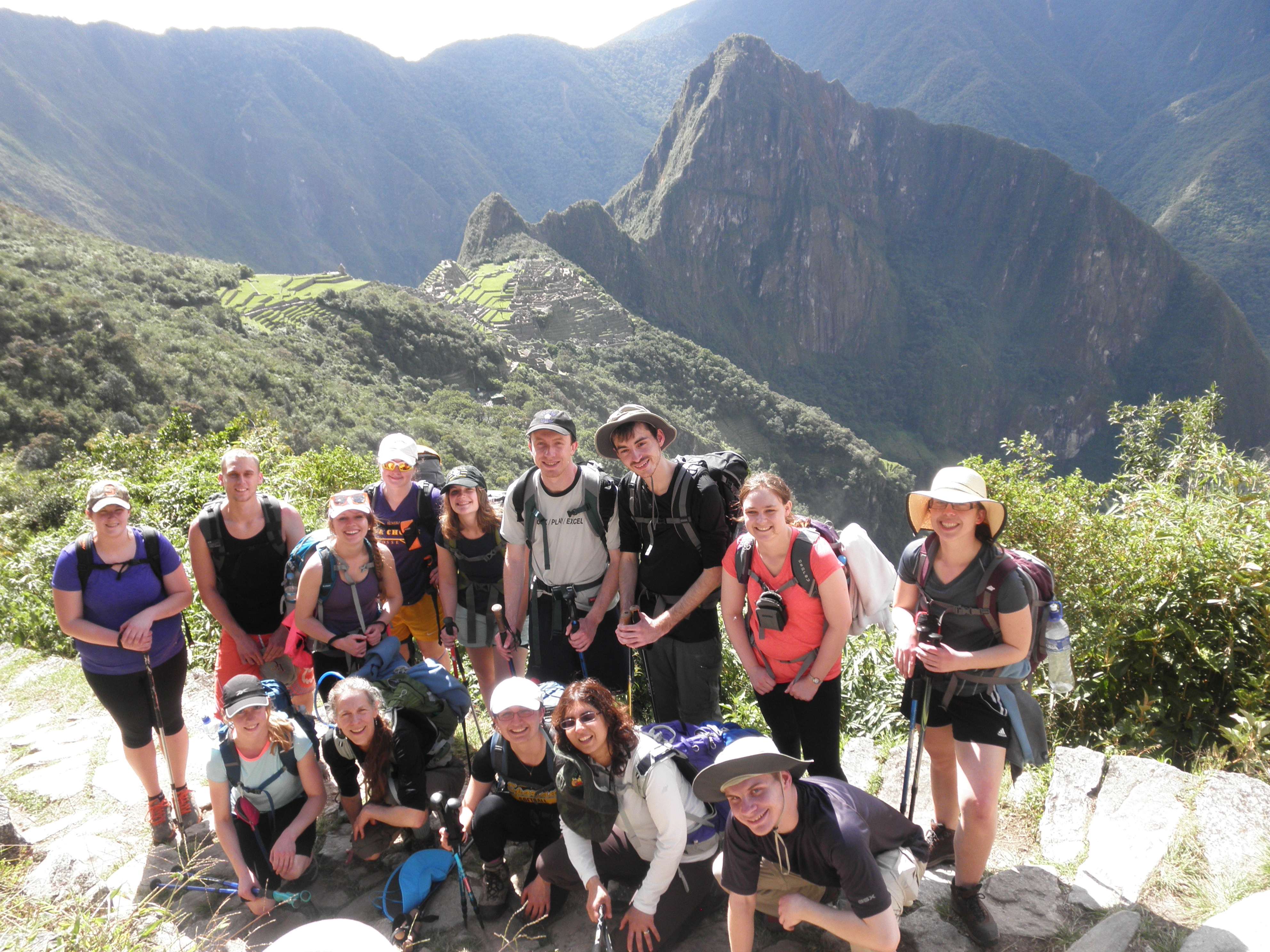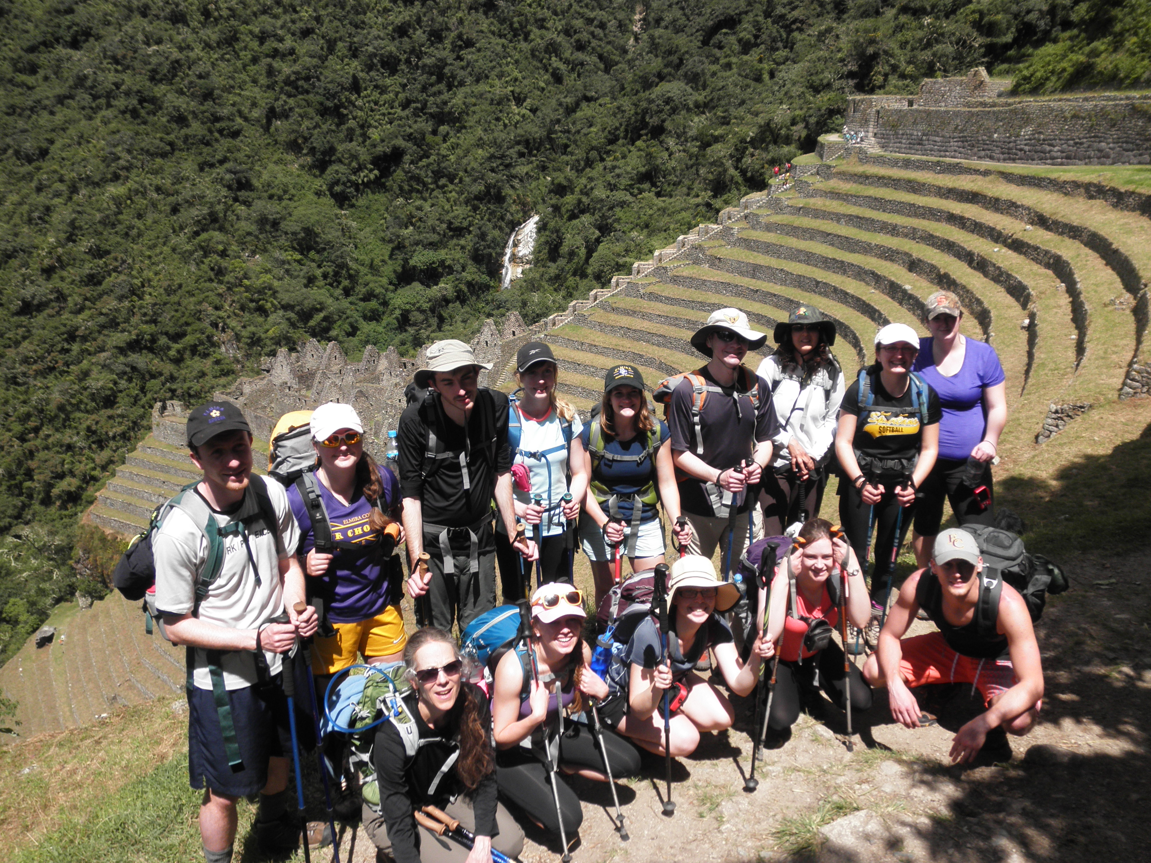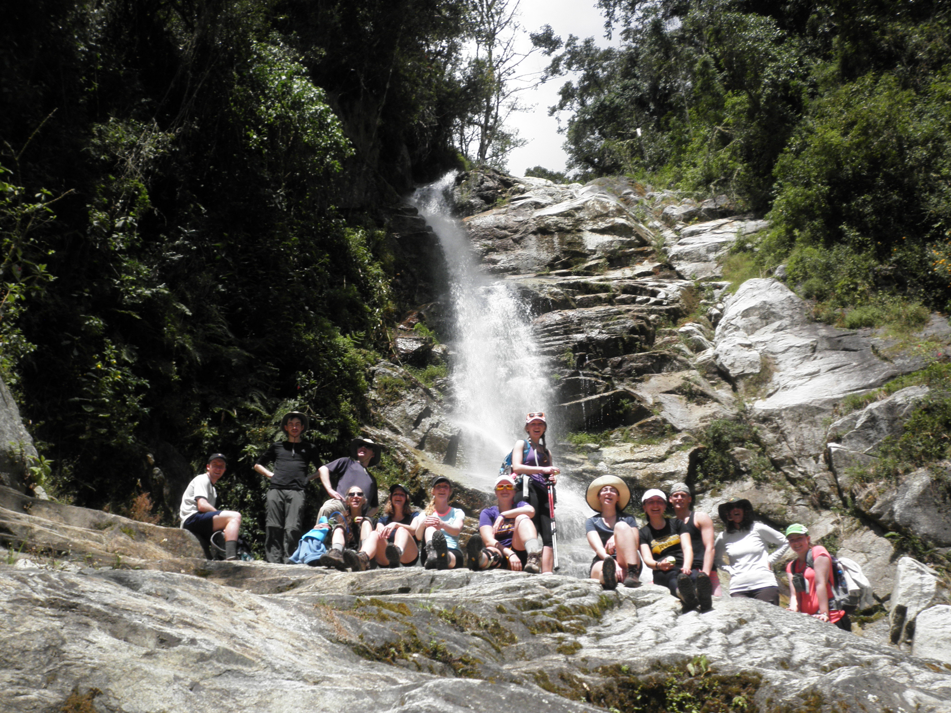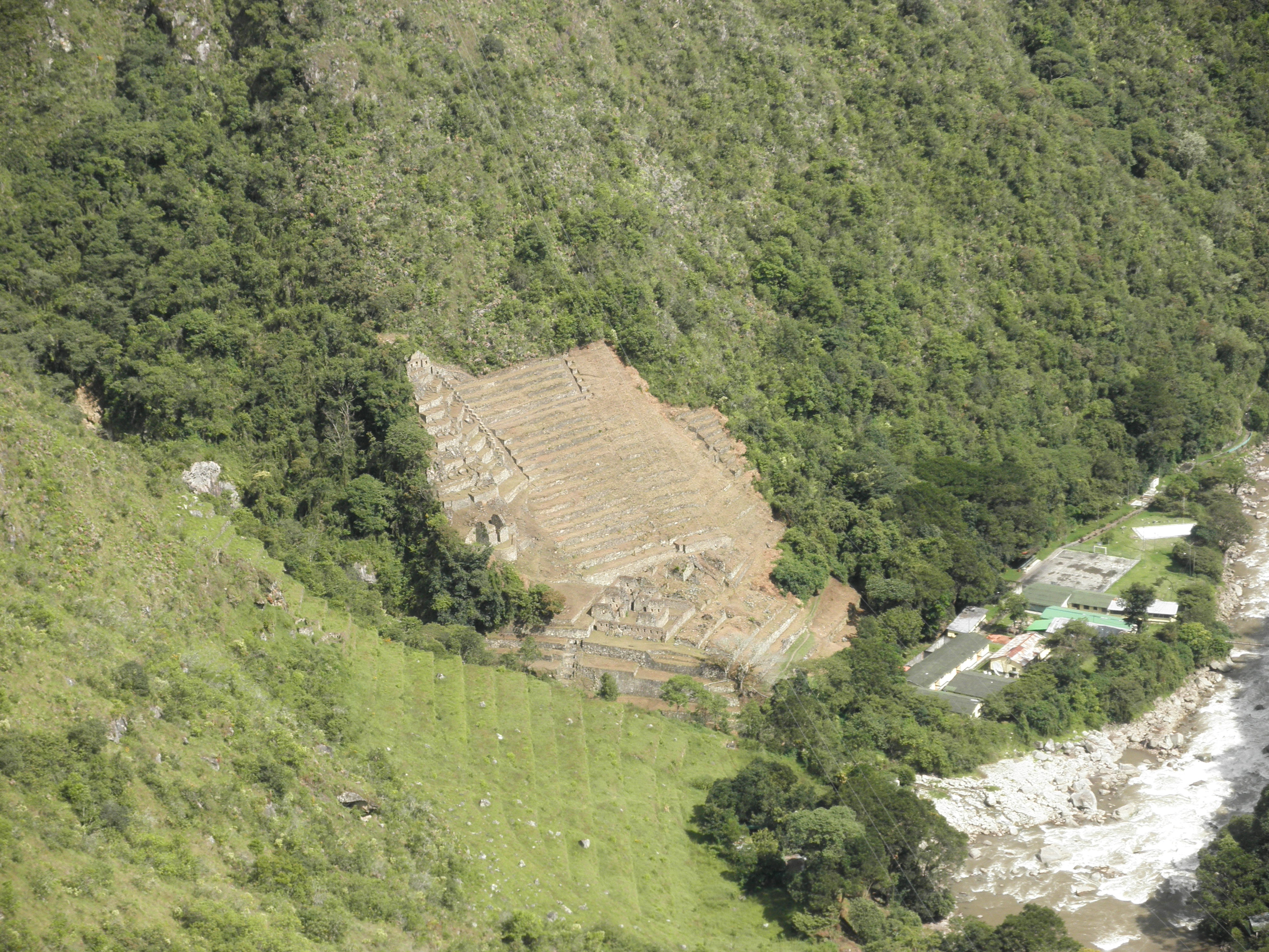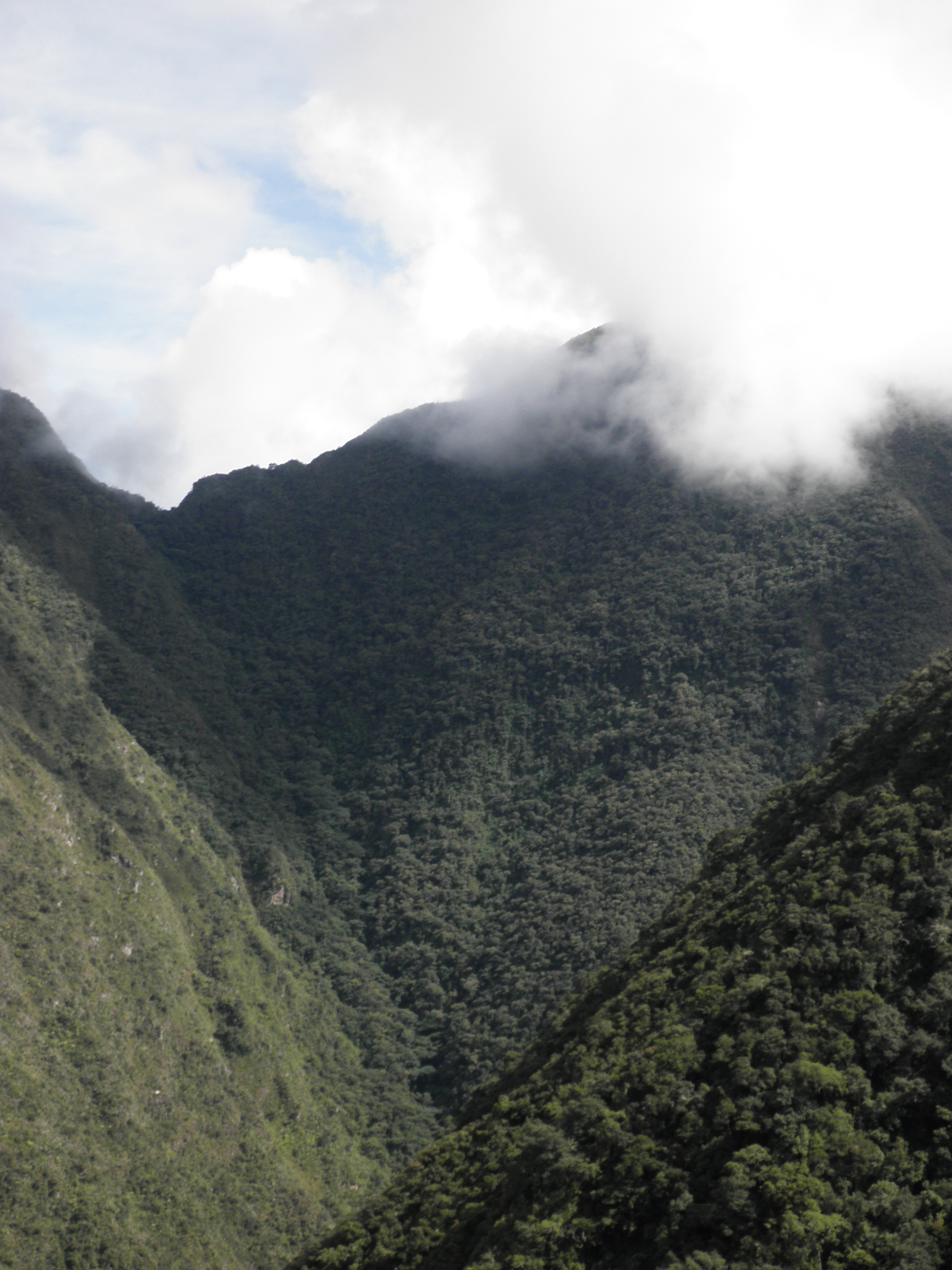 We were supposed to depart from Cusco at 3:30 AM to rejoin the rest of our group at Ollantaytambo, but the bus driver called to say there were problems with the bus, so we waited an hour until the man who planned the trip was able to drive us to Ollantaytambo. It was a “fun” ride since we had to get there quickly and the roads were extremely windy (meaning we both got a bit carsick). We were supposed to meet the other group in time to join them for breakfast, but we were rather late, so we only had granola bars for breakfast (which probably was way less than we should have eaten before a pretty long and somewhat difficult hike). We met them, then headed to the train station to board the train that takes people up to Aguas Calientes. We, however, got off after a short amount of time at the 104 kilometer mark to start the Inca Trail trek. The trek from here to Machu Picchu was a bit difficult, especially after two days of being sick. The first 2 1/2 hours were completely uphill, but after that, things evened out a bit. We stopped briefly for a snack near a waterfall, and also at Winaywayna, an Inca city and site. At one point, I had a lot of trouble breathing (it has been decided that high altitudes and I don’t mix well), but managed to recover and finish the trek. At the very end, right before the Sun Gate of Machu Picchu is a very steep set of stairs that is referred to as the “Gringo (white people) Killer”, but it wasn’t quite as bad as our guide had made it sound.