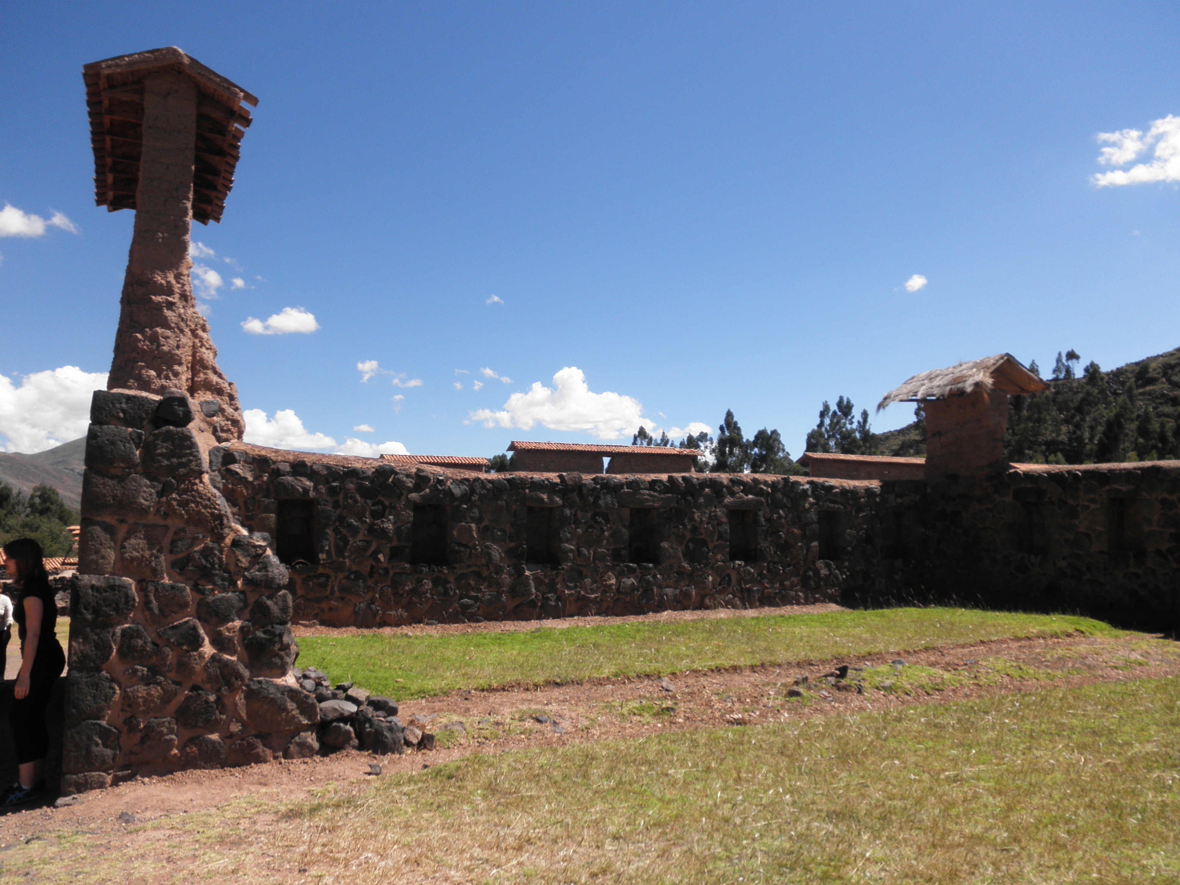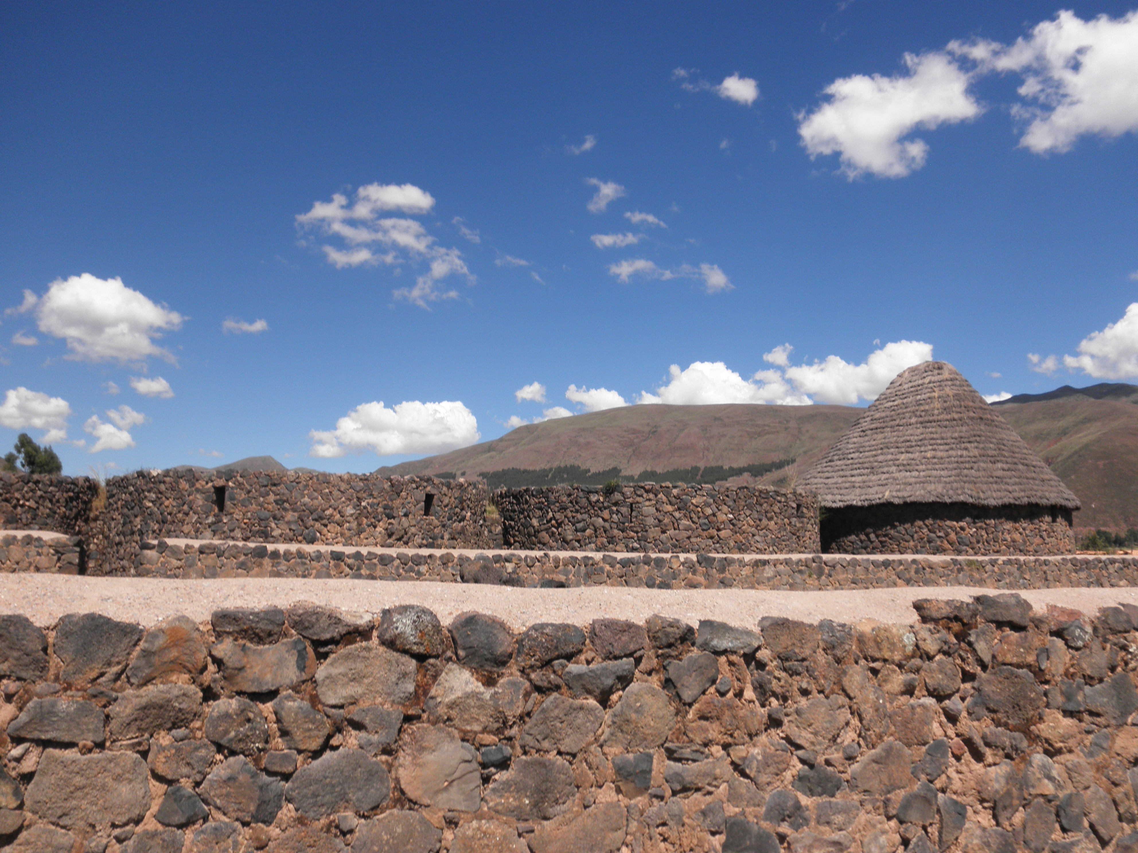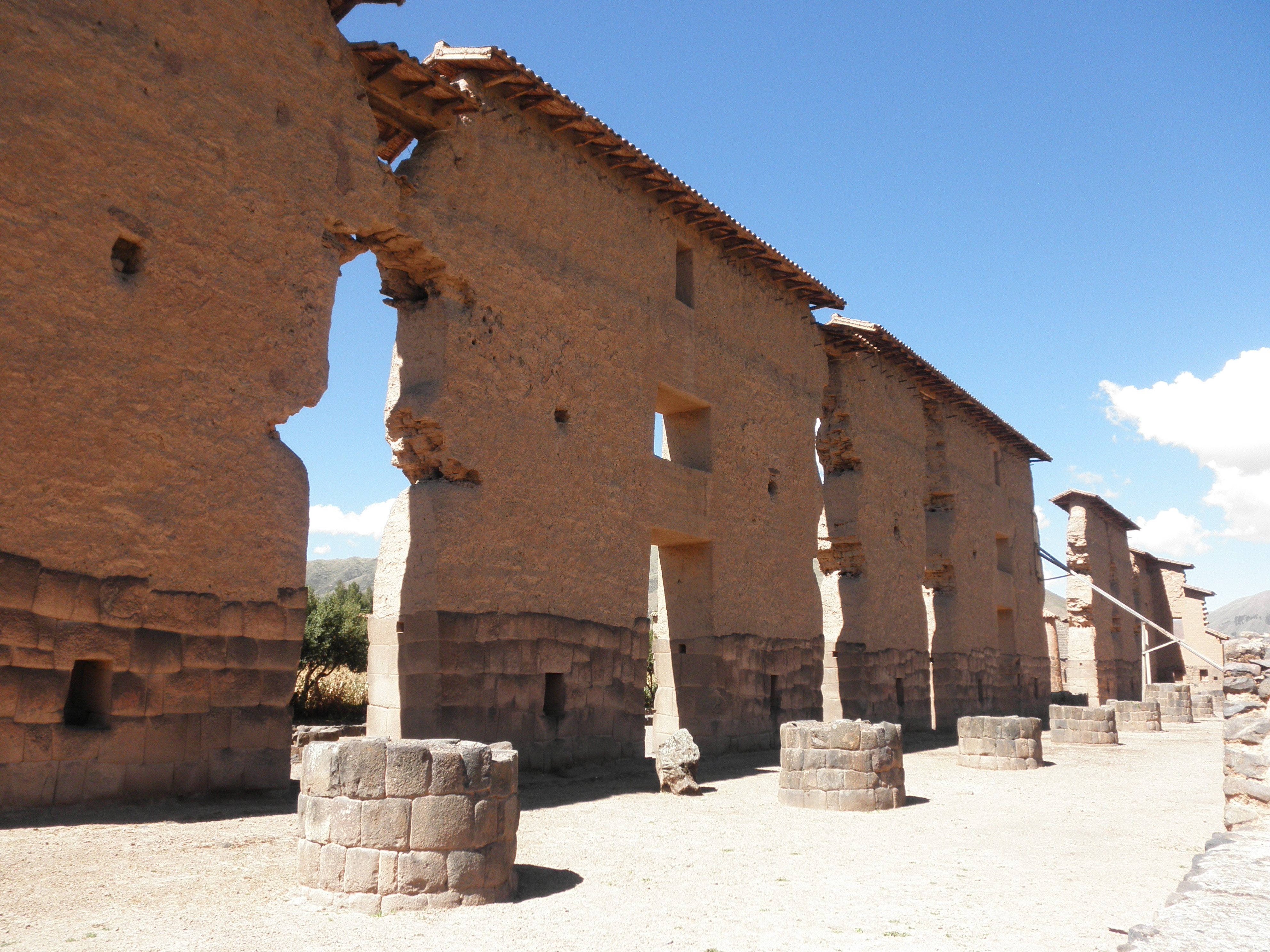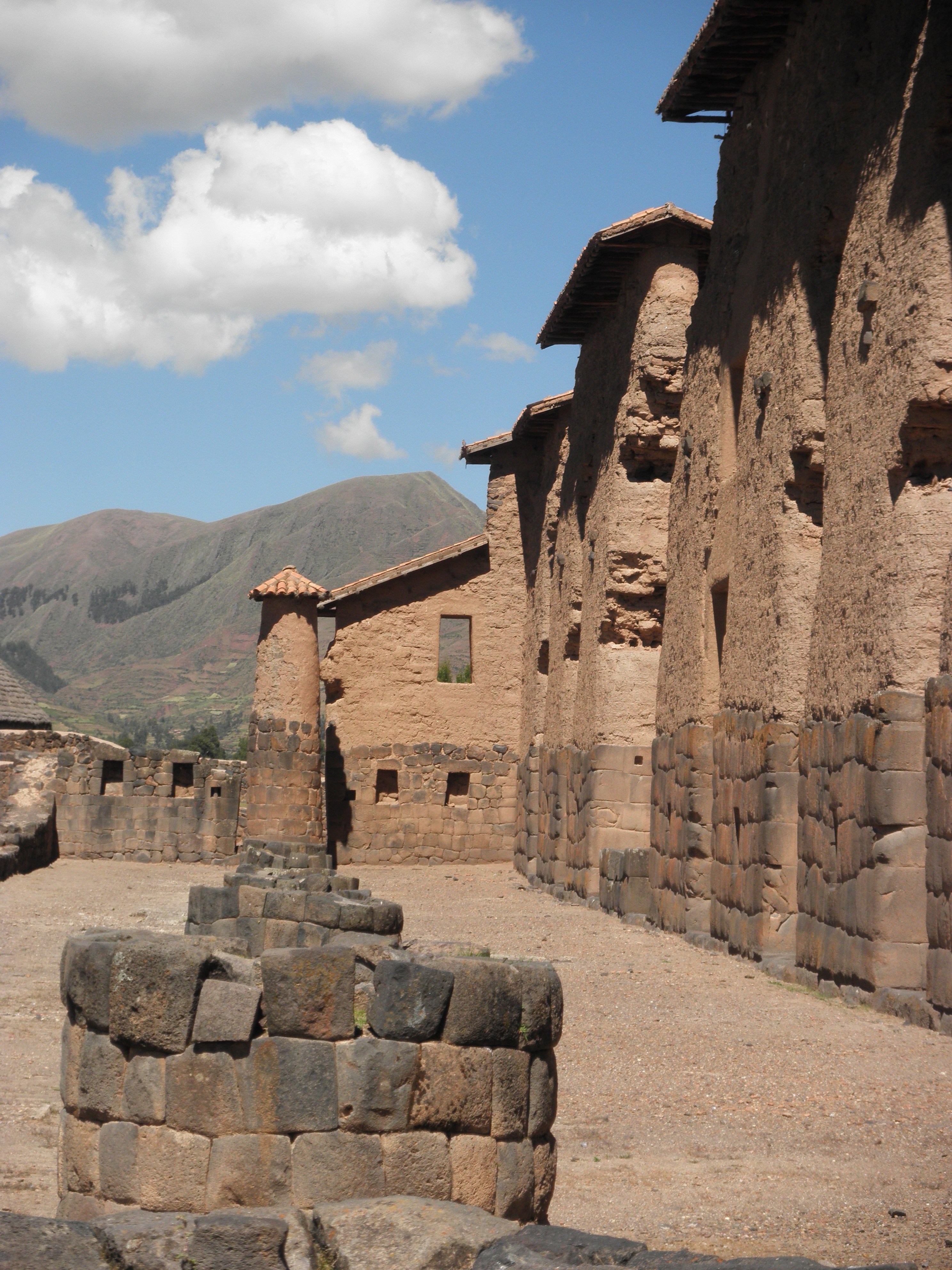 From there, we headed to Raqchi, another Inca site. This Inca site was unlike any of the others we visited while in Peru. There is a large temple with high walls using a mix of stone (typical of Inca construction) and adobe (this is the only Inca site where we saw adobe used). In addition, there are 22 large columns that once held up the roof of the temple. According to our guide, this is the only place the Incas used columns in their construction. The temple was built because the people the Incas conquered had difficulty believing in an invisible god. Pachacutec, the Inca king, built the temple so that a large painting of the god could exist for the people to see. There was also a city here and some of the buildings still stand. In addition, there are many circular buildings, which were used to store the food that the Inca people were required to pay for taxes. The food was then used in times of drought or famine. There is also a large “Great Wall” surrounding the city to protect it from attackers.
