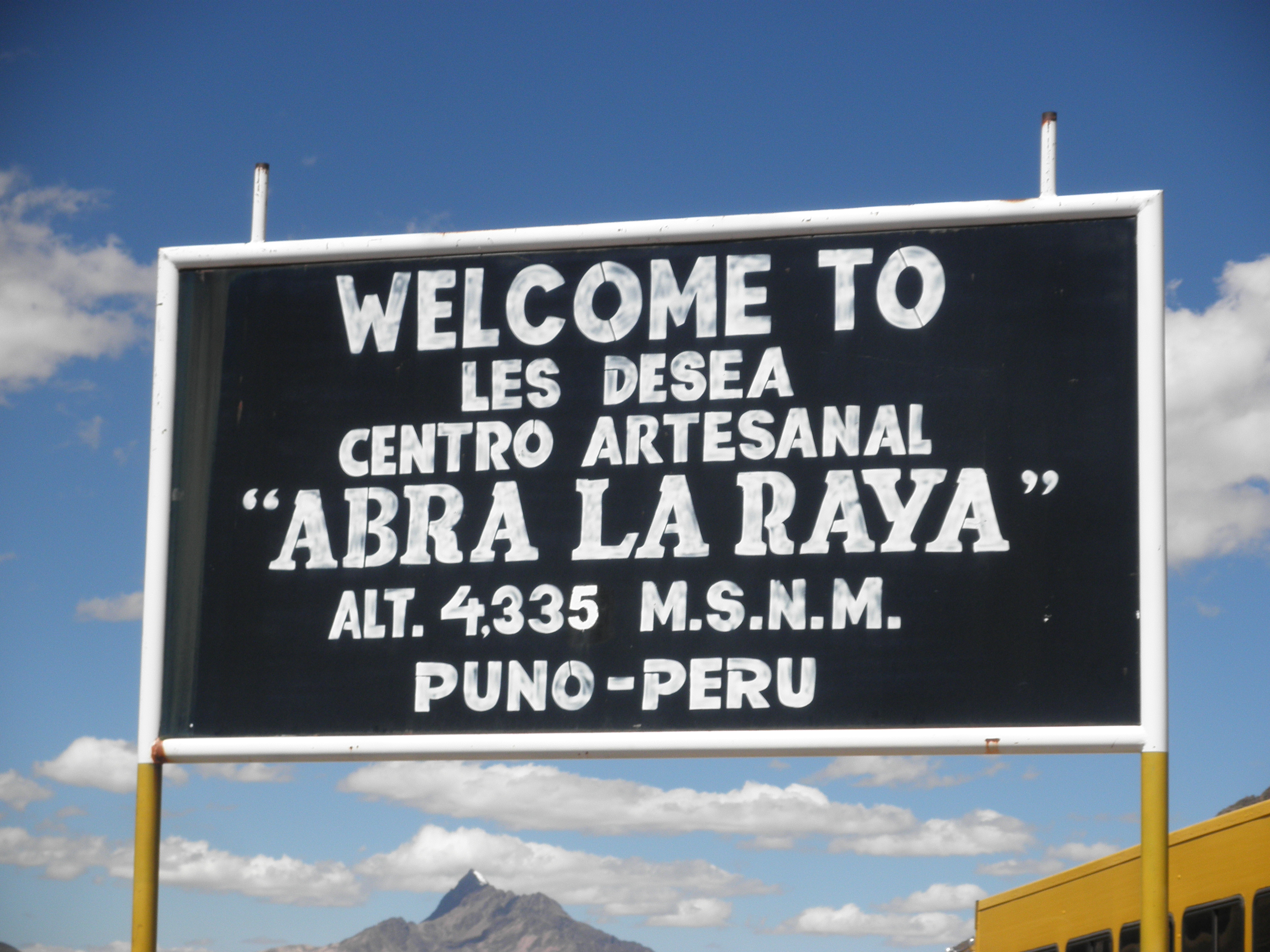 We then headed on to a nice restaurant in the country for lunch. There was a buffet, so we were all able to eat of fill of traditional Peruvian dishes. After another hour or so on the bus, we arrived at “Abra La Raya”, a small artisan marketplace with amazing views of the valley. I bought some yellow alpaca yarn there.
