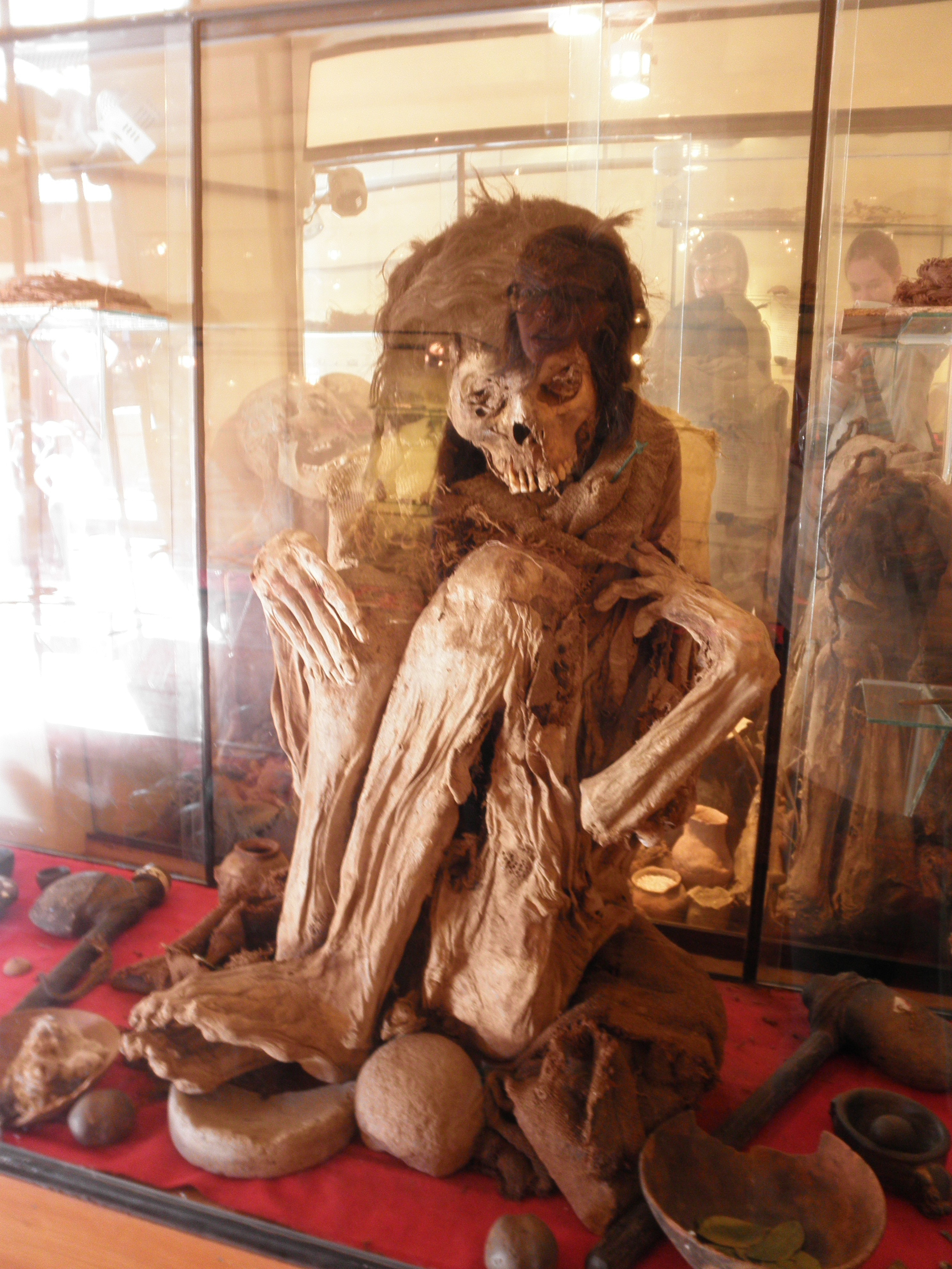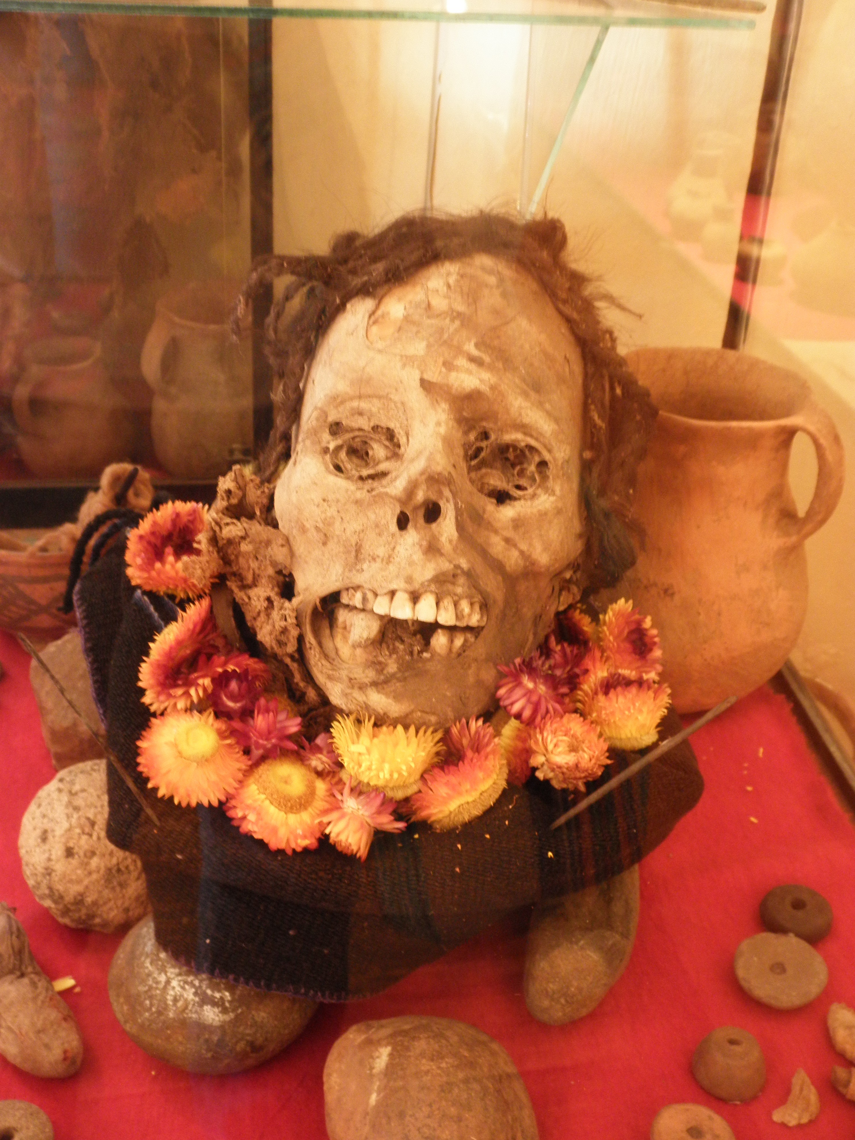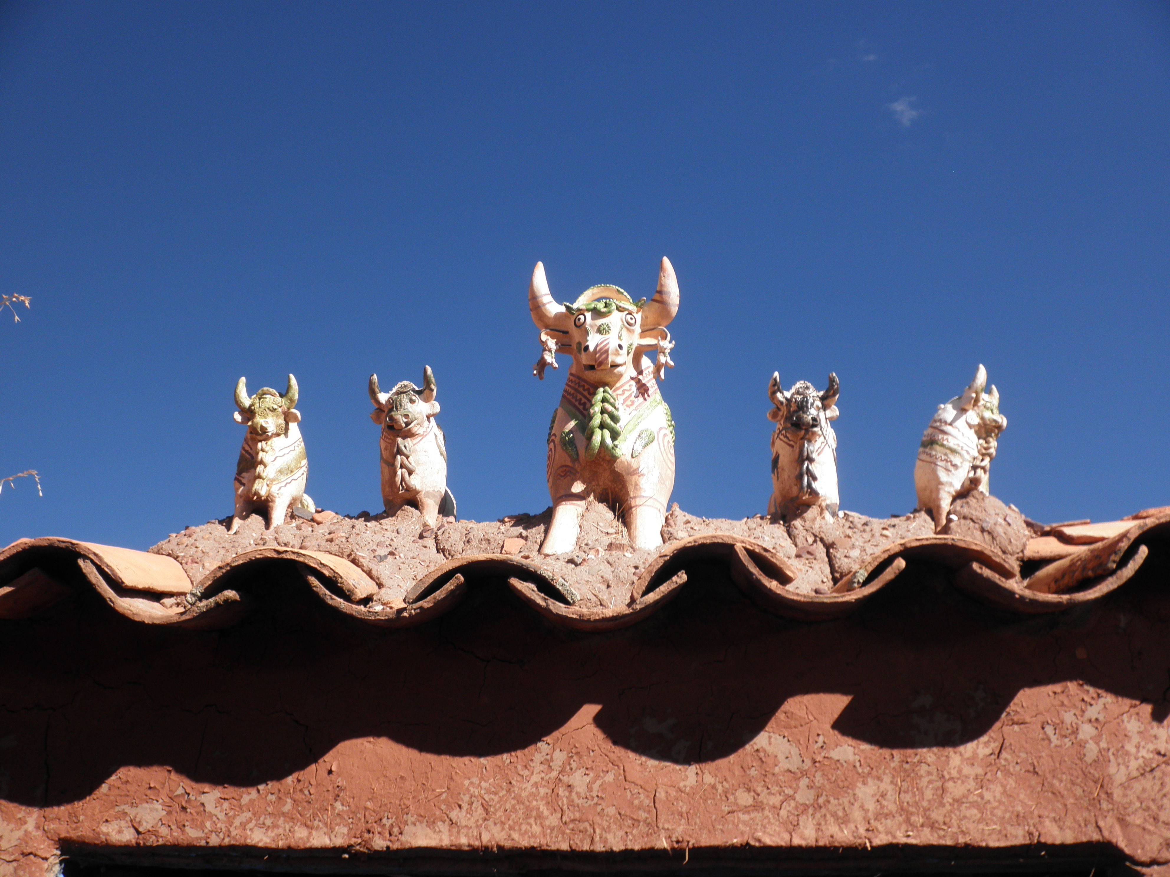 From there, we went to Pucara, a town well-known since Inca times for its ceramics. Today, it is where many of the ceramic bulls found throughout Peru are made. The bulls are placed in a home to protect the home and those that live there. In Inca times, llamas were used, but the Spanish changed it to bulls. There was also a small museum there, where we were able to view a few Inca mummies. The mummies were entombed in a fetal position because the Incas believed that you should return to the earth in the same manner you are born.