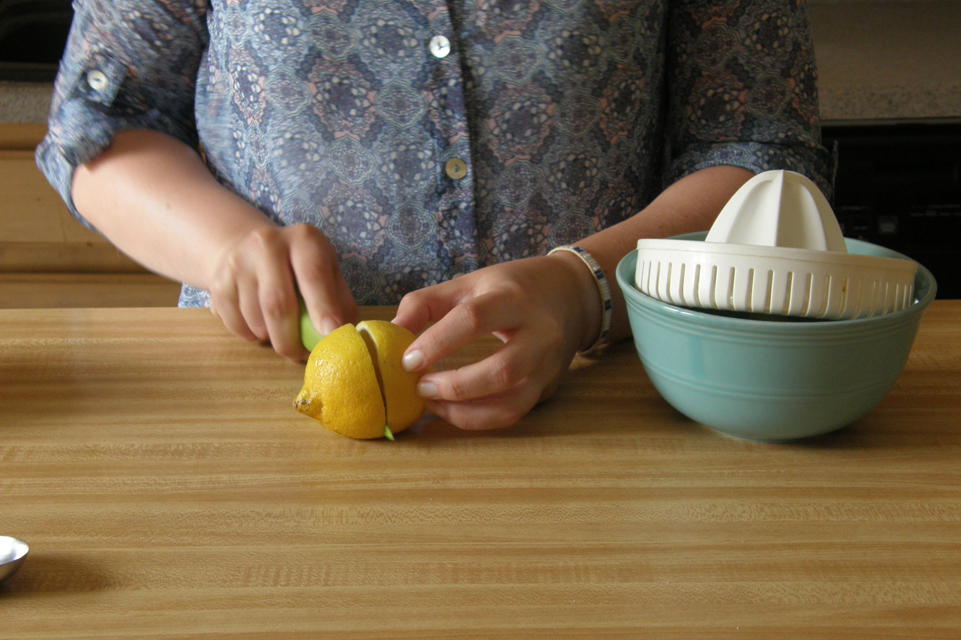 1. Take 1 average-sized lemon and cut in half (the little knobs should be on either side).