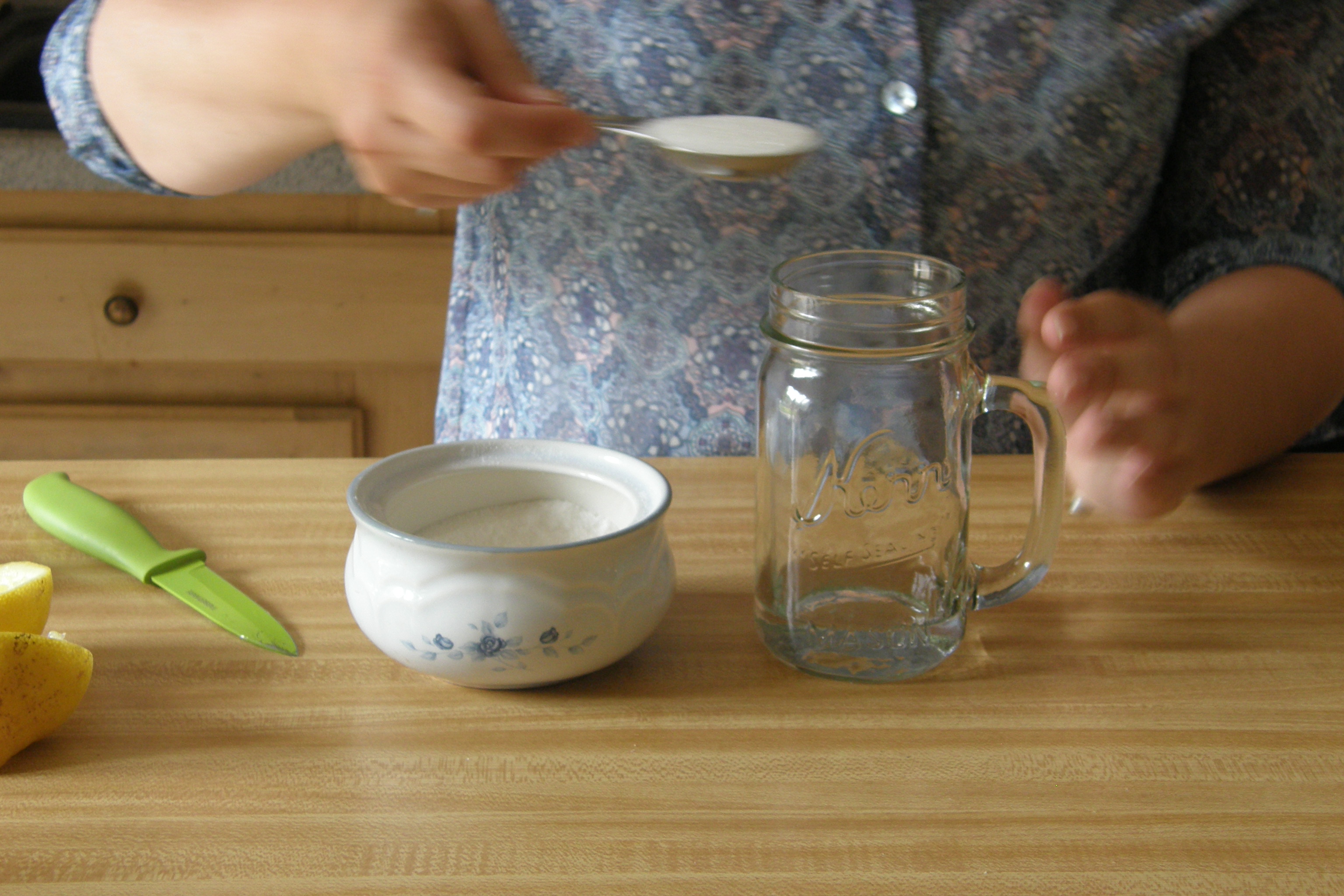 6. Measure out and add 3 Tablespoons of the freshly squeezed lemon juice to the glass and stir (I’m normally able to get about 3 Tablespoons of juice from each lemon- if it’s a little less, it should still taste fine).