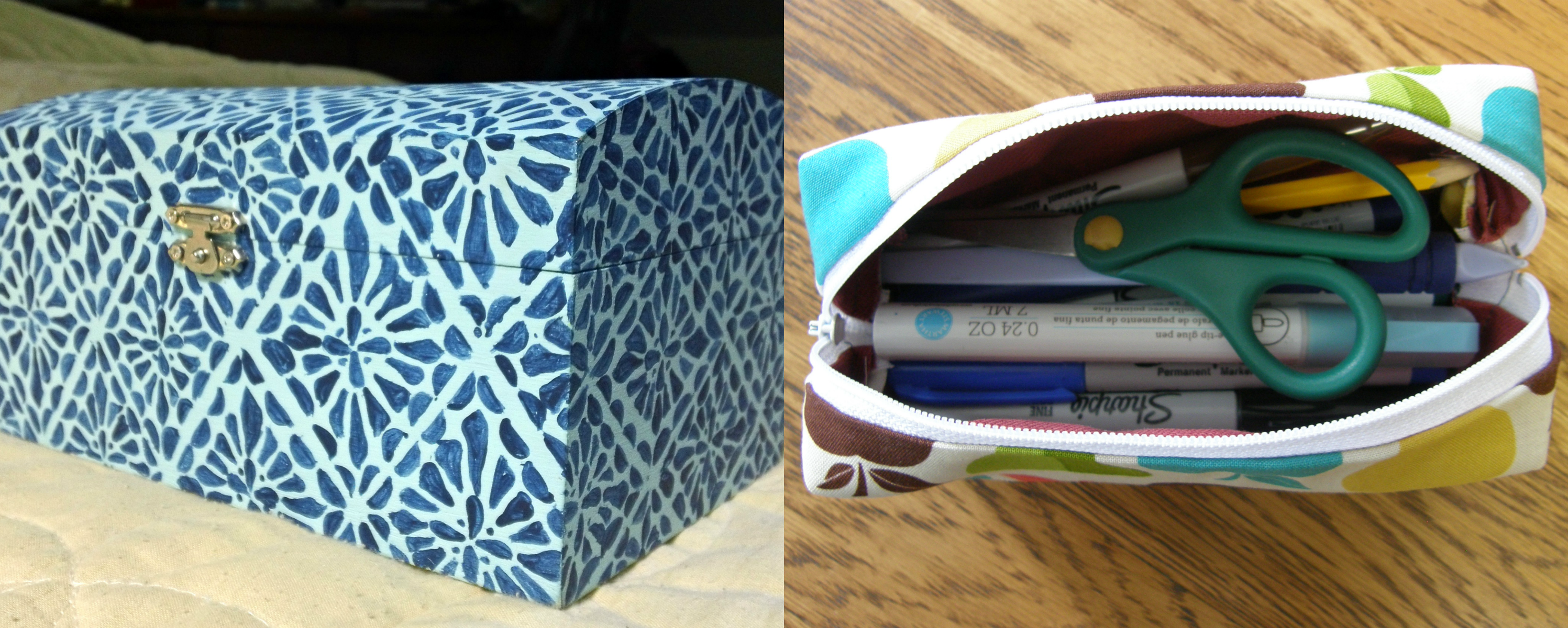 Creativity. Painted a wooden box, sewed a pencil case, and worked on ceramics.
