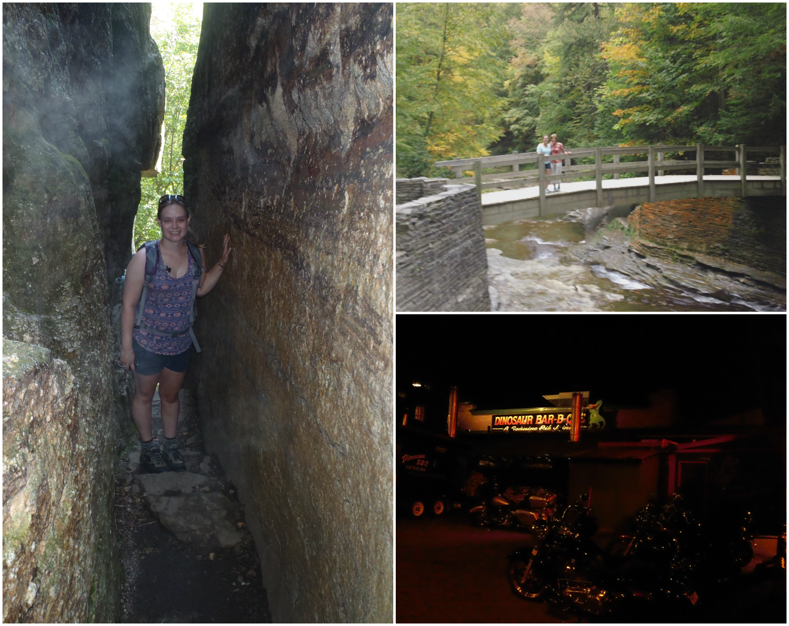 Family. Before heading back to school, visited with both sets of grandparents. My mom’s parents shared lots of stories from their earlier days. Also before heading back to college, went on a day trip with my brother, mom, and dad to hike at Ice Caves and walk around the town of New Paltz (New York State). My parents came up two weekends ago for family weekend, but instead of staying on campus, we drove to my sister’s college, picked her up and hung out in the Rochester, NY area. We had a lot of fun speaking in accents during our times in the car, went to one of my best friend’s cross country meets, went to the Hemlock Fiber Festival, grabbed apples and fresh donuts from an apple orchard, and ate at Dinosaur BBQ (so, so good!) with my friend and some family friends. This past weekend, I had visits from my grandparents and my mom and sister (my sister went home for the weekend, so they stopped on their way picking her up/taking her back). Got to eat some good food and hiked with my mom at Stony Brook Park (we got a little lost and took a trail that was a bit longer and more strenuous than either of us had really planned on, but it was really beautiful).