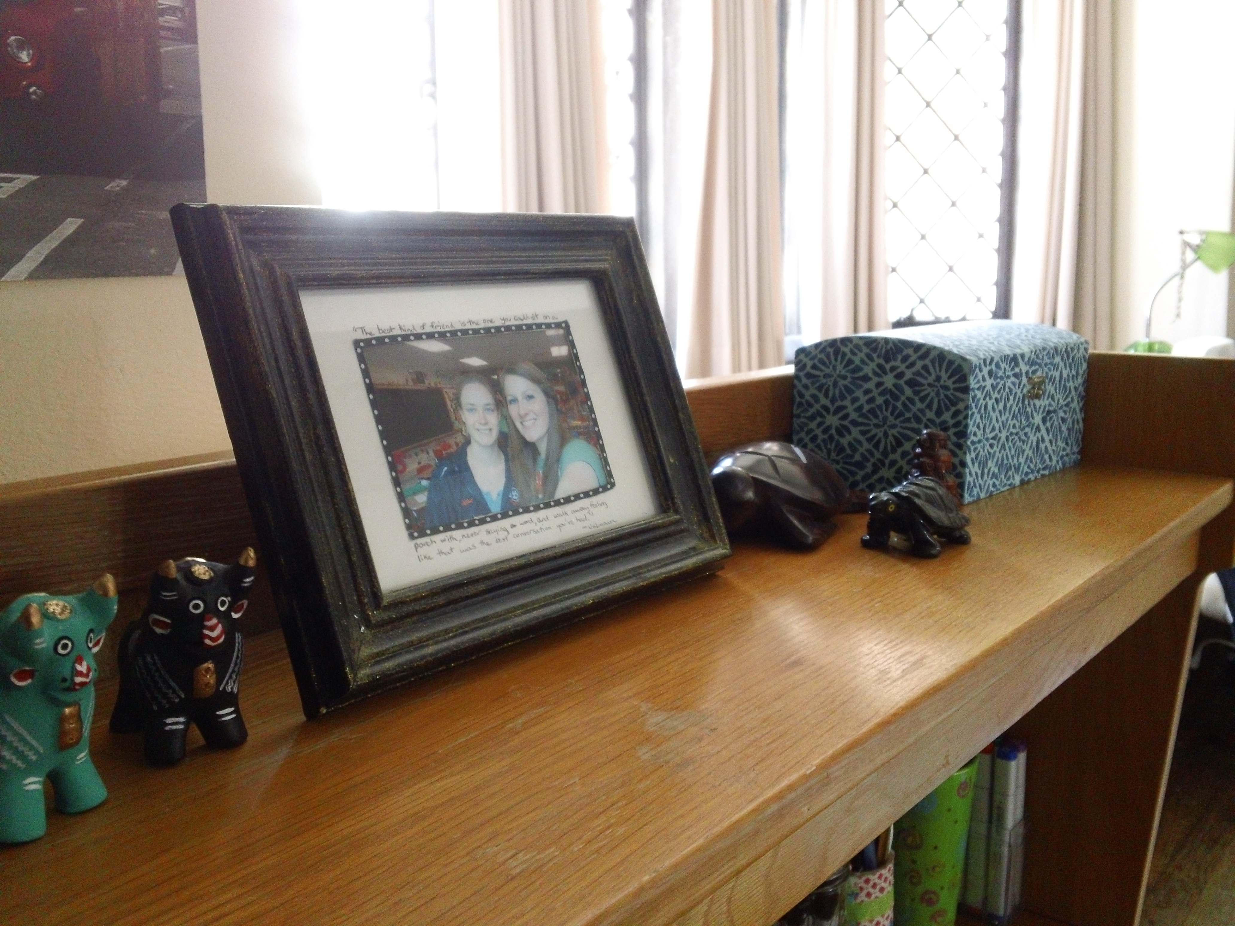 My dresser hasn’t changed all that much. I did get a new plant though! I helped out at a girl scout event and they one of the activities was to plant and learn how to take care of this plant (urg, I can’t remember the name of it!). I also have a tray underneath the dresser now for wet shoes (when water mixes with road salt, it really looks icky on wood floors). It actually just the top of one of my plastic totes, but it works.
