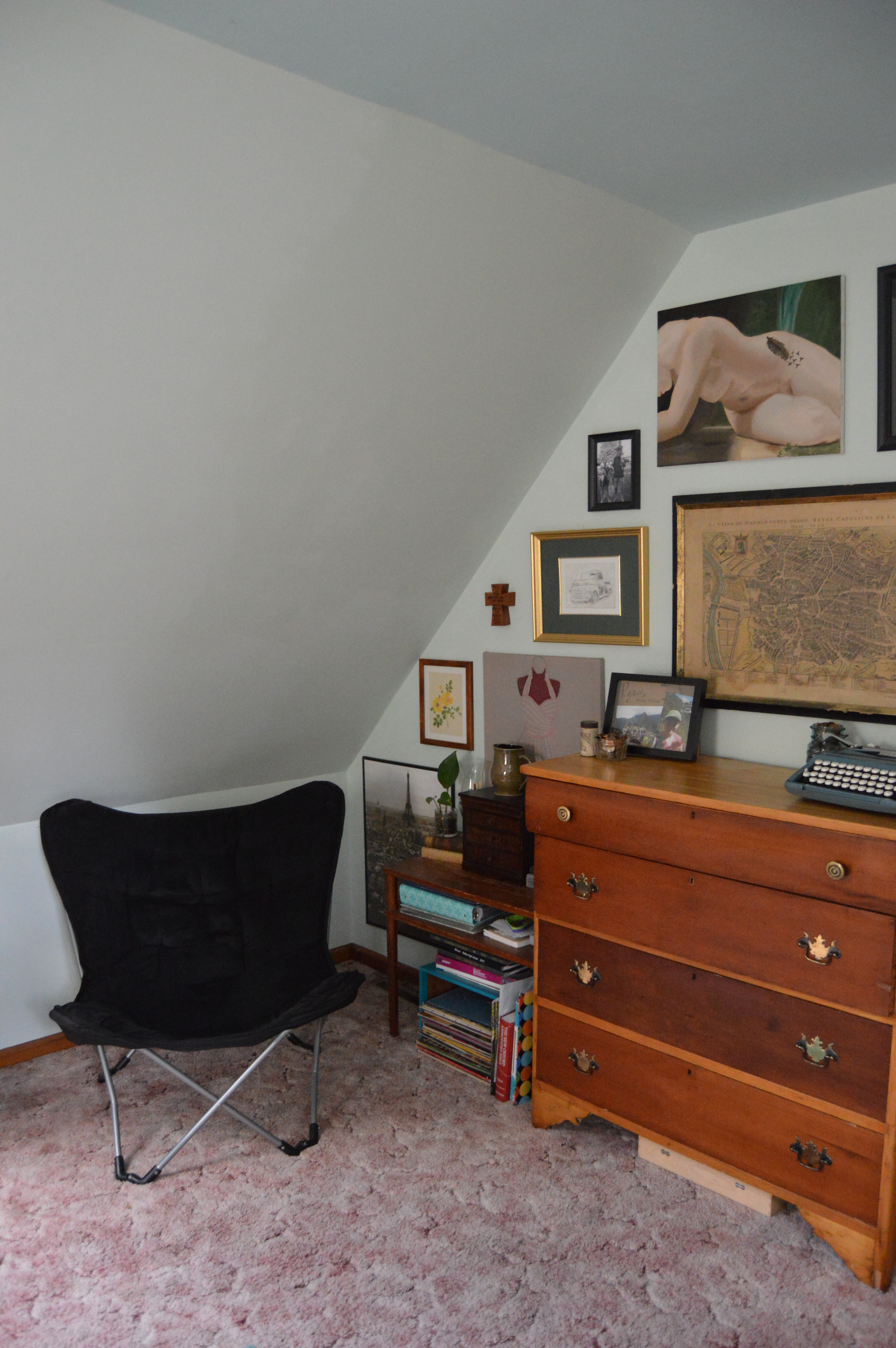 Because there are only two walls that artwork can be hung on, I wanted to make sure I took advantage of them. This wall holds my dresser and a gallery wall. I’m really happy with how it turned out.