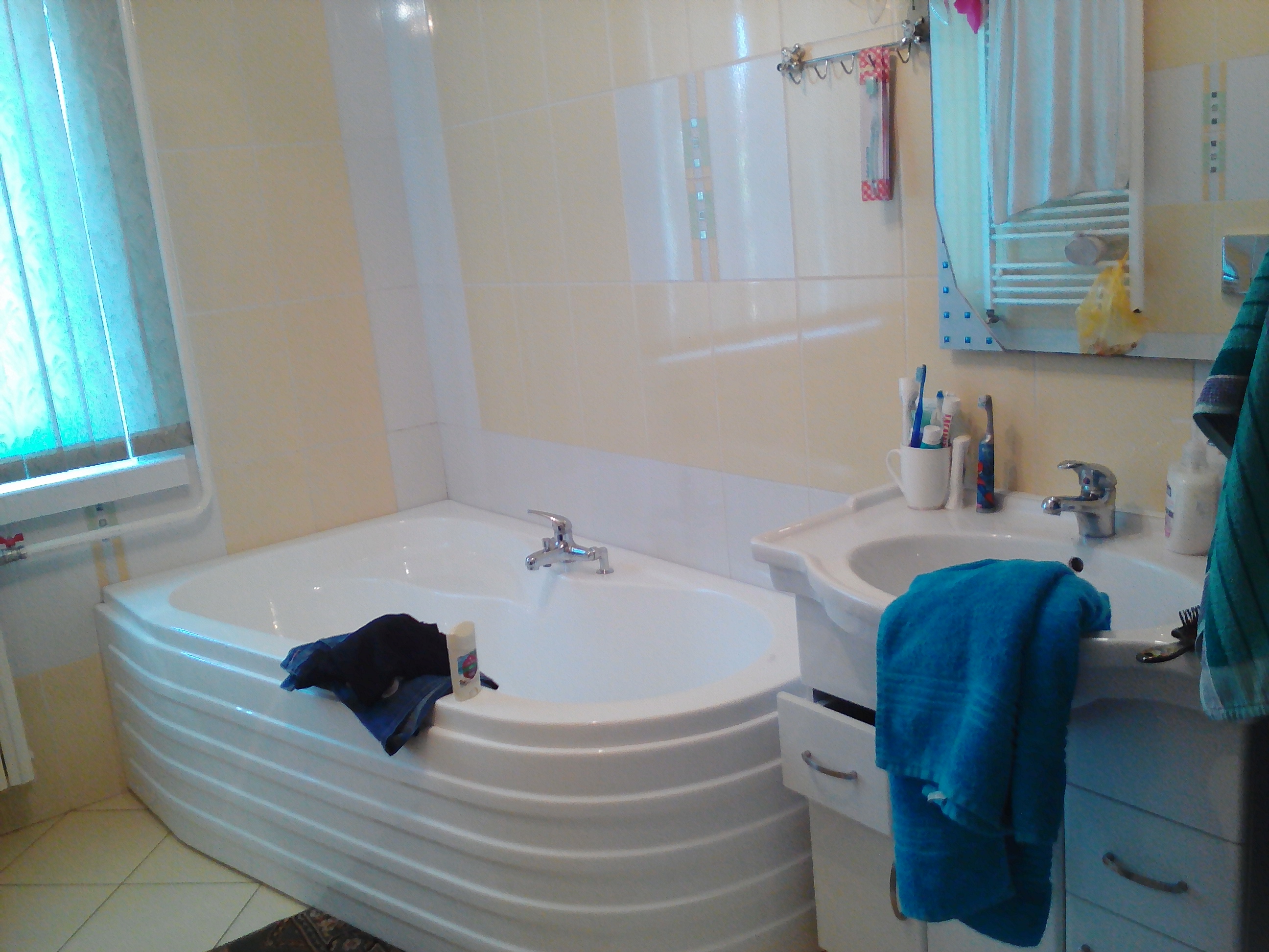 My house is beautiful! It is definitely nicer than most homes in Moldova. I even have an indoor toilet, and a shower with hot water! The house is large, and mostly made up of the bedrooms. There are three bedrooms. I am staying in what was Lucian’s room. While I’m here, he’ll have a temporary bedroom in the kitchen, since they have a summer kitchen that’s not attached to the house. The house has plenty of light, and is pretty- wood floors, cushy rugs. My bedroom is quite nice. I have a pretty big bed, some space for clothes, etc., and a desk. I can see the hills surrounding the town from my window.