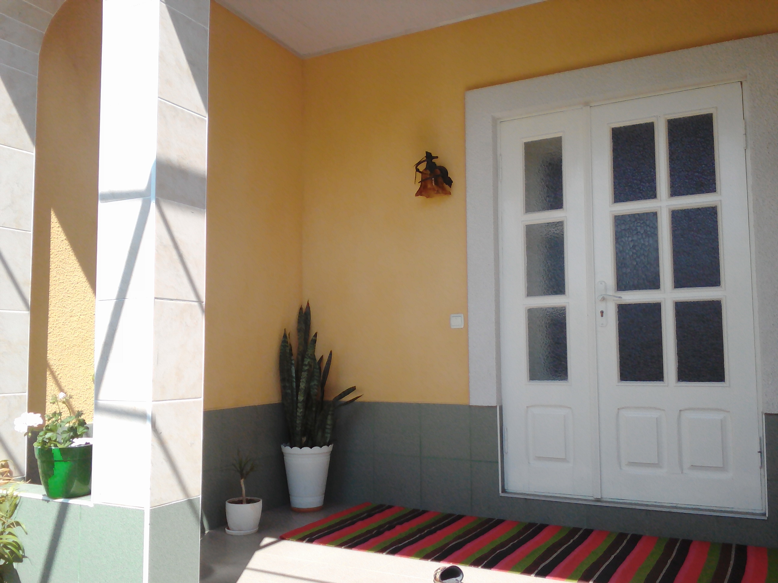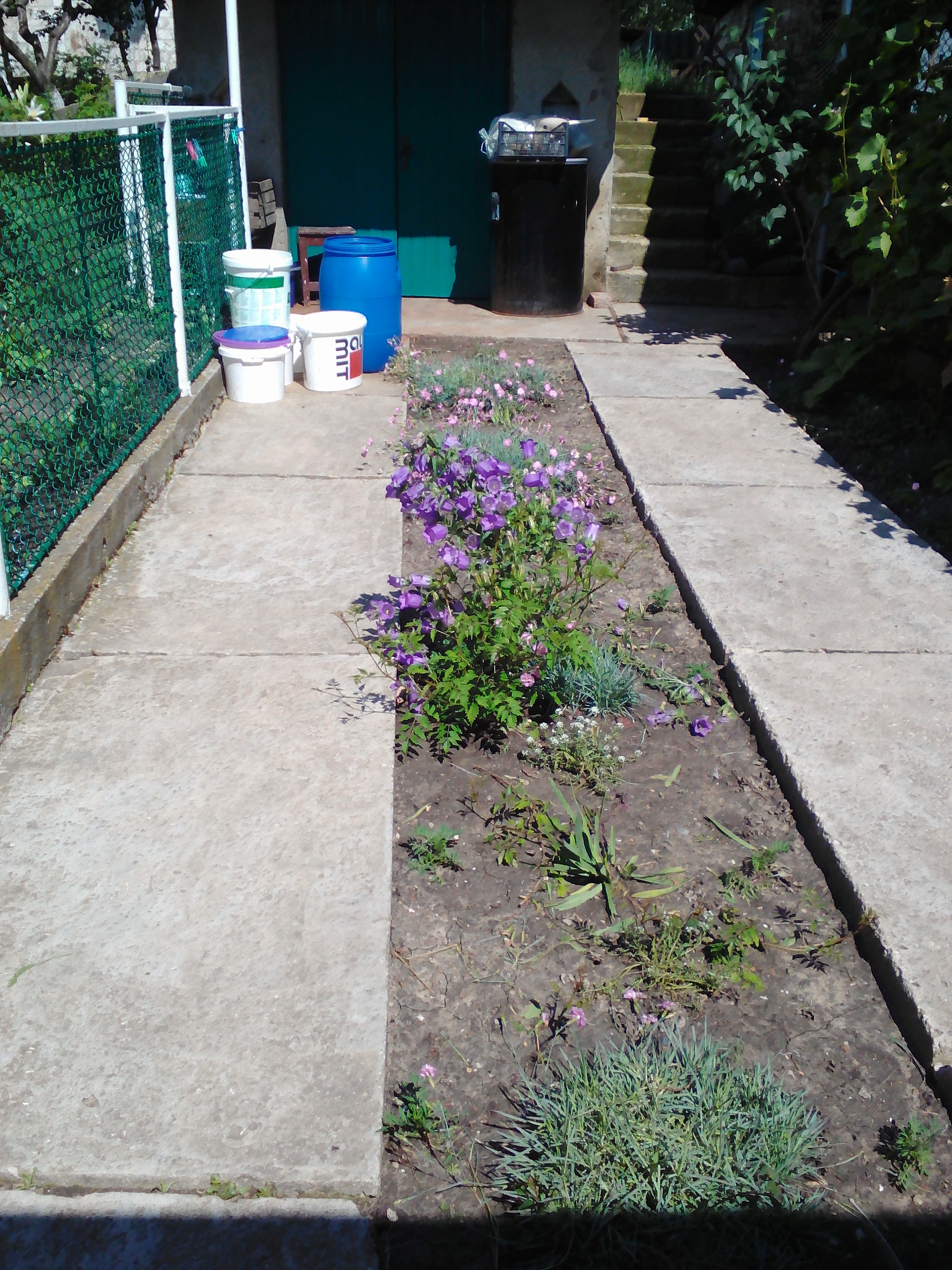 There is a small flower garden in front of the house. The entrance to the house is large and covered. Moldovans do not wear shoes inside their homes EVER, so you take your shoes off before you enter the house and leave them on the porch.