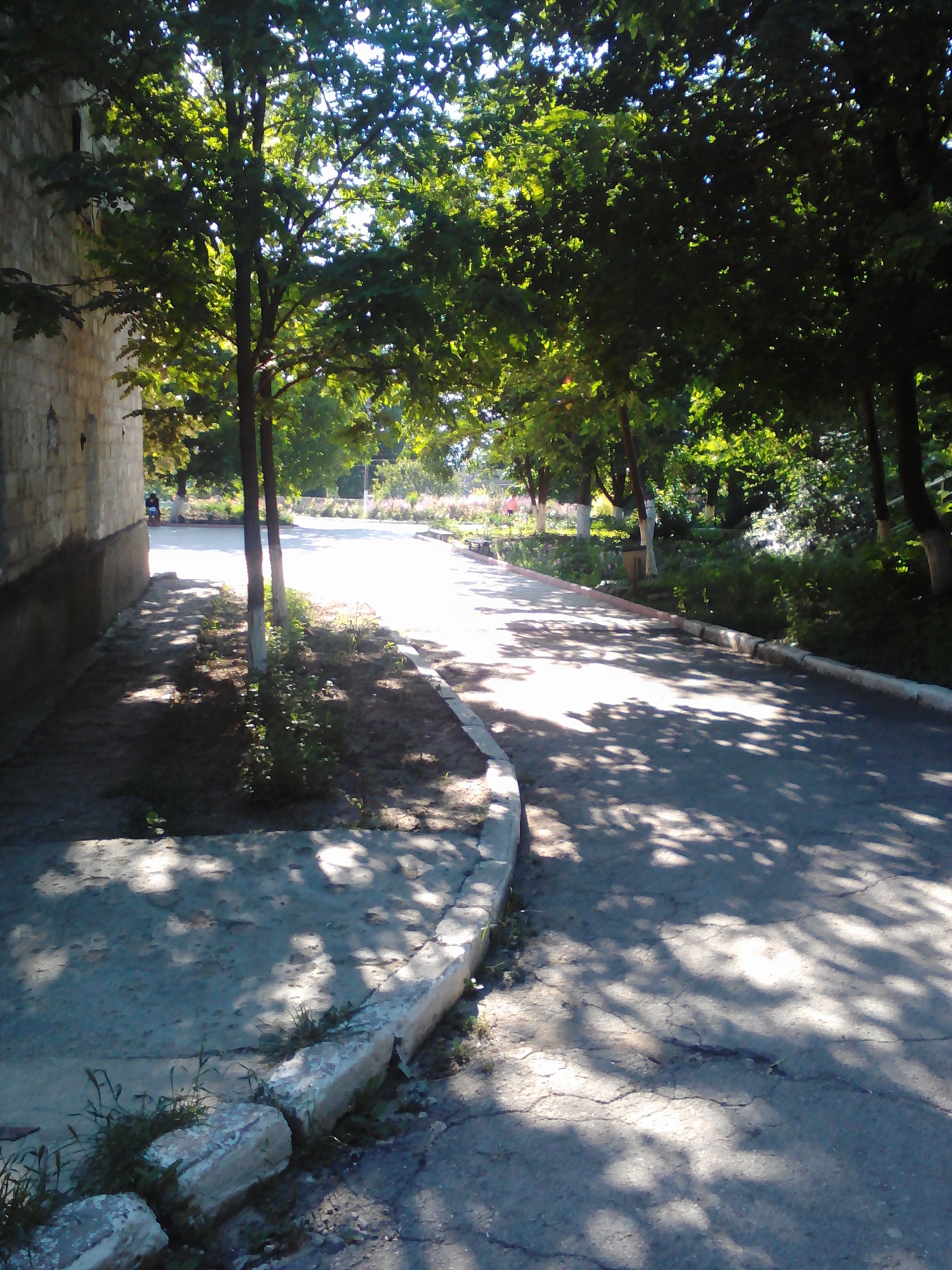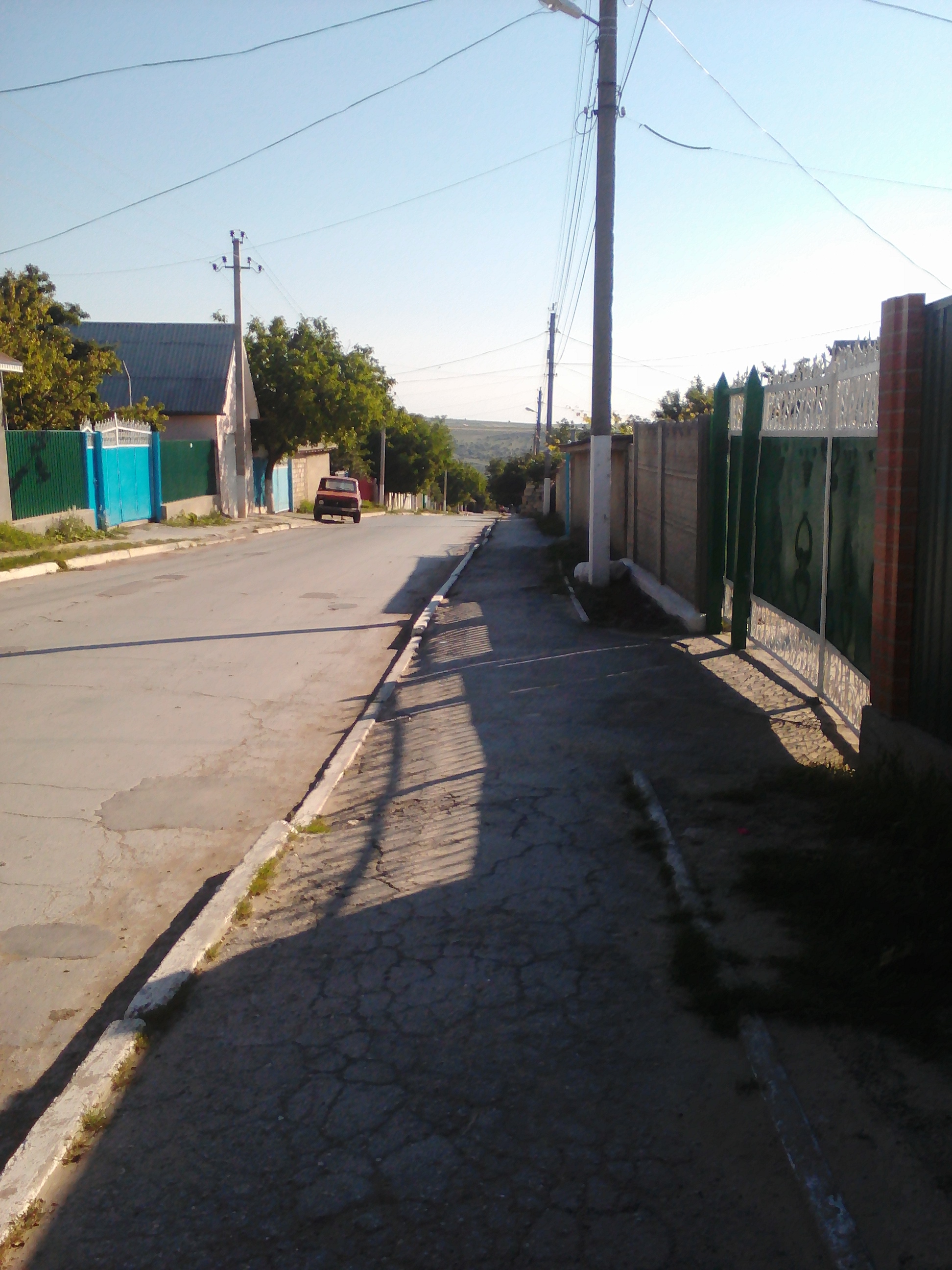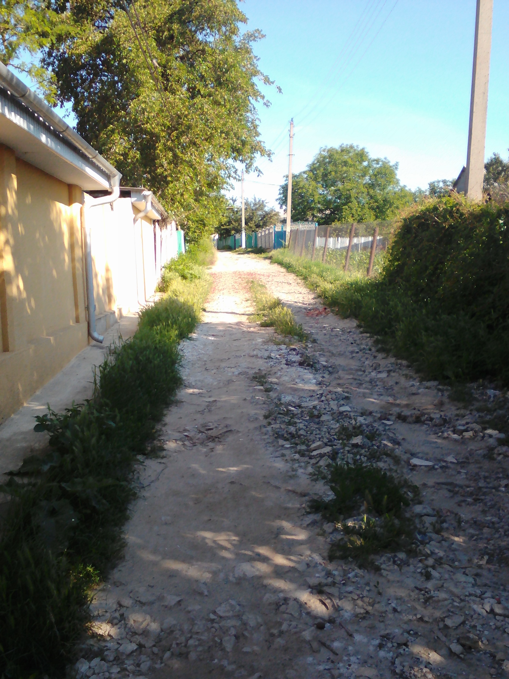 I live only a 10-15 minute walk from the school I go to for training, but some people are a bit further. My first day of classes, my host brother Lucian walked with me to the school, but now I know the way myself (I sometimes walk with other volunteers that take the same route to the school). It’s a pretty walk on both very uneven unpaved roads and nicer, paved roads with asphalt sidewalks. I pass numerous houses and gardens on my way.