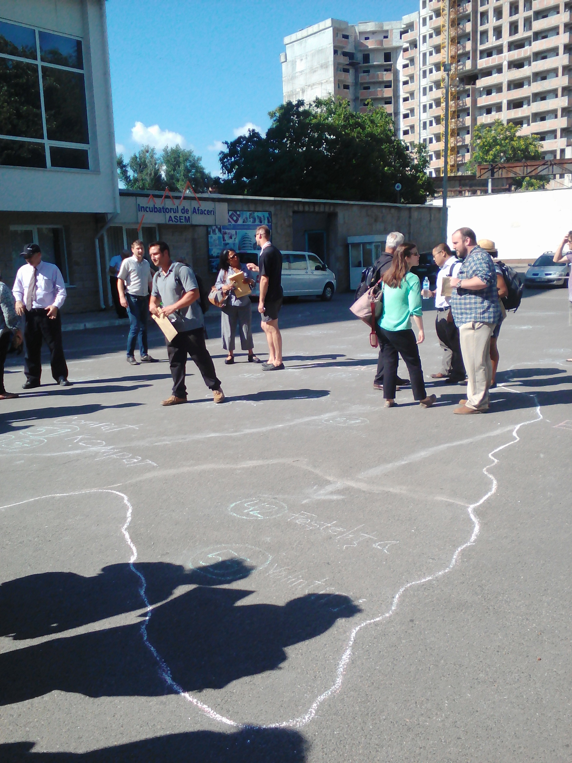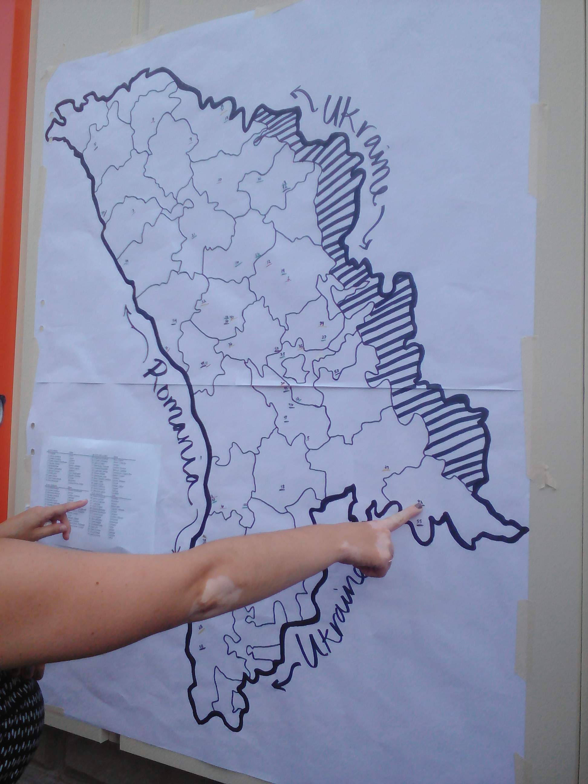 Our Site Announcement was yesterday, and it was very exciting! While we were in sessions at the hub site in Chisinau, the mentors and staff mentors drew a huge map of Moldova outside in a parking lot. The map was divided by raion (region), and circles with numbers were drawn at each of our sites. After we finished our sessions, we headed outside. We could see the map but didn’t know where each of us would be located on the map. We were then blindfolded and the mentors guided each of us to our circle on the map. After everyone was situated, we were told to take off our blindfolds and we could see where we were on the map! We were also each given an envelope with additional information about our sites.