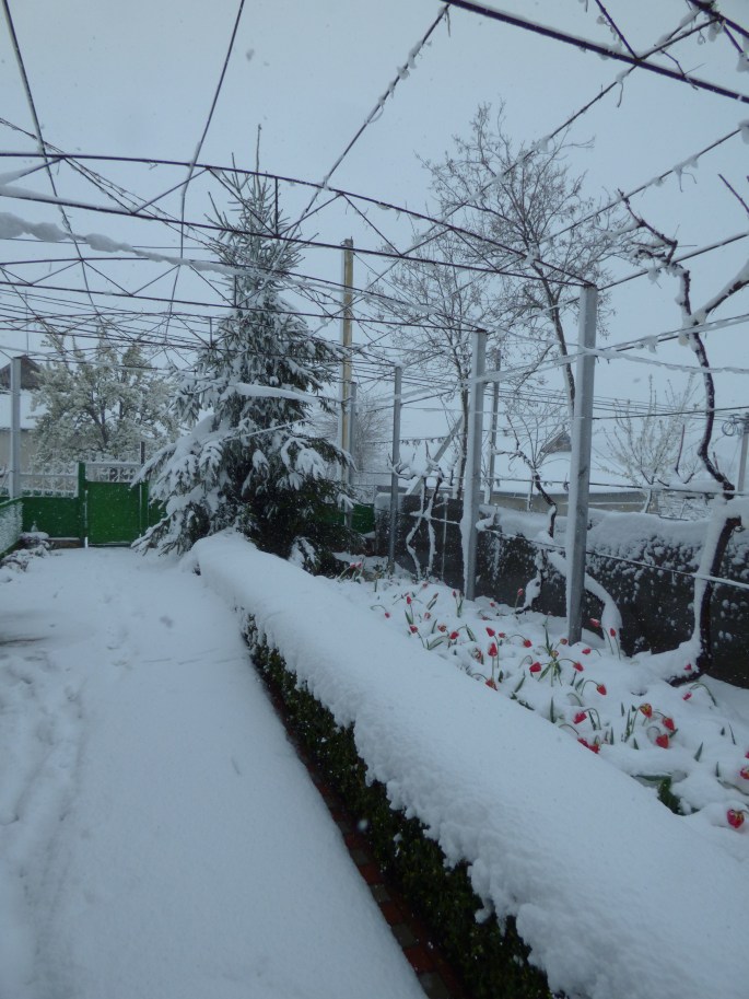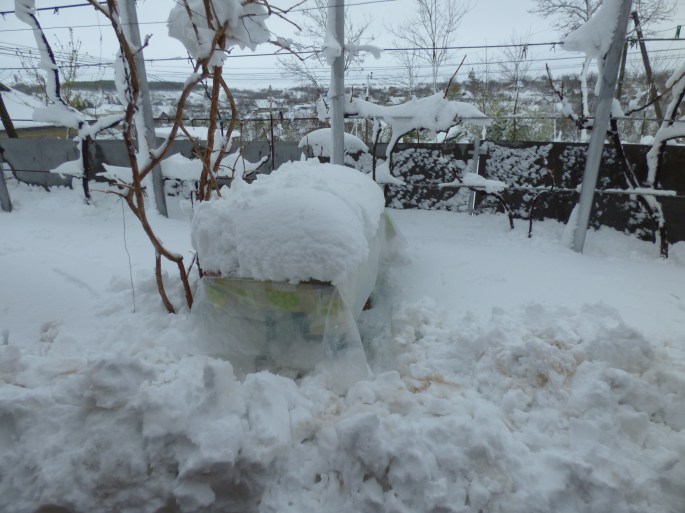 The weather here has been consistently nice and warm for the past month or more. That’s typical for here, and snow in April (even a dusting) is extremely rare in Moldova. On Thursday, however, we got hit with a really big snowstorm with high winds and cold temperatures. According to the news, this is the most snow Moldova has ever gotten so late in spring. It also caused a lot of damage.