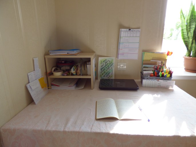 One of our jobs as volunteers is to make sure that we have data to support and show the work we do. For education volunteers, this means we do pre- and post- tests with every student we work with for the course of the school year. It is important that we can show our schools, communities, and Peace Corps what progress we have made and what we need to work on. It’s also good to be able to show our partner teachers and students the improvements students have made throughout the year. It’s also a lot of work (I worked with 206 students this year, which means there are that many tests to grade)! The picture at top is my desk this afternoon as I work on correcting and grading and recording the post-tests for my 9th grade students! I promise it’s not always this messy (see picture below for proof).
