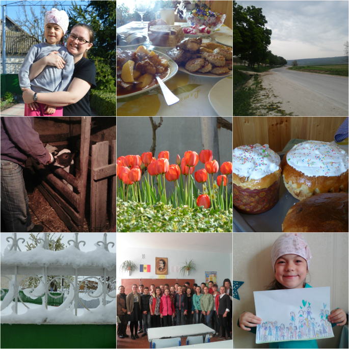 I went to Chisinau for a weekend to celebrate a fellow volunteer’s birthday and enjoy the gorgeous weather. My host niece, Valerica, visited for a few days. My English Club at school skyped with a friend’s 3rd grade class in the United States. We enjoyed gorgeous spring- and even summer-like weather. Tracey, our Peace Corps Moldova country director, visited my school and came to an English Club meeting. My school and I worked on and submitted a grant proposal for a Peace Corps SPA grant. I enjoyed Easter Break, and celebrated both Easter and Memorial Easter. I walked with my host mom and visited her sister, who had a baby calf! We had a huge, late snow storm that caused wide-spread damage throughout Moldova and left us without power for 2 full days. Good weather returned quickly. I went to Chisinau again with a partner from school (a Romanian teacher) to present our grant proposal (and we were awarded the grant!) and also visited my host sister in Boscana.