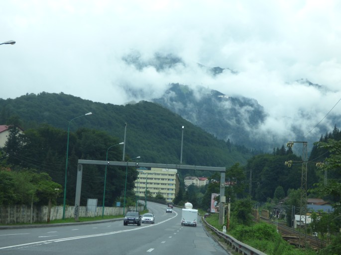 The following morning, we were hoping to hike and visit Peleş Castle, but didn’t end up doing either. The weather was not cooperating for hiking (though it wasn’t raining hard, my sneakers were old and had no tread, so hiking in the mud wasn’t ideal). We had trouble finding a place for breakfast, but eventually ate at the same restaurant as the night before. We then headed to the information center in town, only to find out that Peleş Castle is extremely crowded on summer weekends (it was a Sunday) and we would most likely have to wait at least 2-3 hours in line to take a tour. It was becoming clear that many of the visitors coming in for the day were coming from the direction of our next destination, Braşov, so we also realized that if we waited, we’d be stuck in traffic for a really long time along with all those visitors. So we decided to just head on our way.