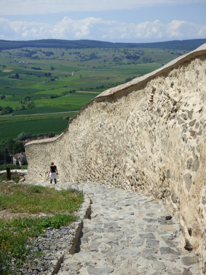 While on our way from Braşov to our next destination, Sighişoara, we were driving through a town when we saw what appeared to be a large walled fortress on the hill above the town. My dad thought he may have read about it while researching what to do in Romania, so we decided to check it out. Thankfully the fortress, Rupea Fortress, was open, and when we arrived there were only a few other cars.
