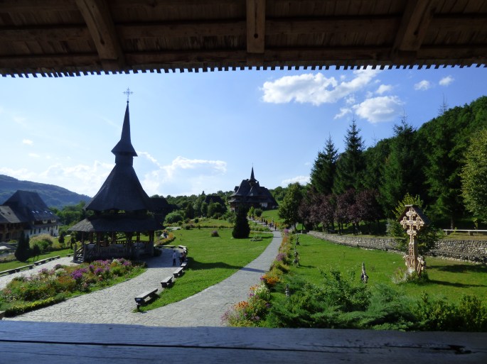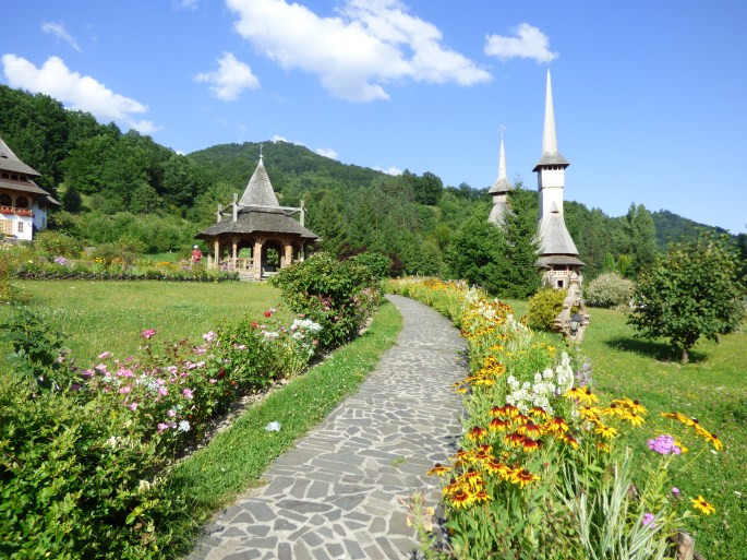 We had planned for our next stop to be at Bârsana, but we somehow ended up at Bârsana Monastery instead of the historical church. We still enjoyed walking around Bârsana Monastery, which has a recently built wooden church as well as many wooden buildings of different purposes. There were nice views from the monastery and it was well-maintained with gorgeous gardens.