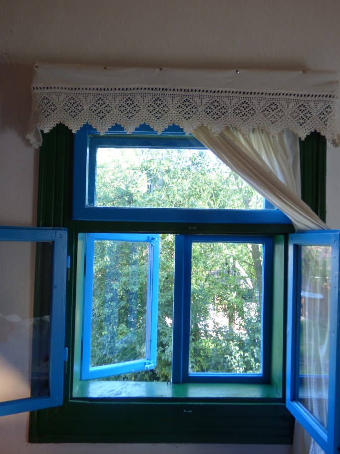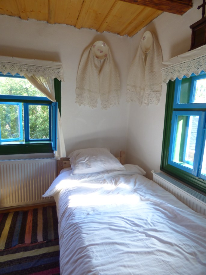 After spending our afternoon visiting some of the wooden churches, we headed to Breb, a small town further north. Here, we had booked a home stay at a small farm. The room was simple but clean and pretty, and the location was quiet and peaceful. I loved that the little “cabin” we stayed in had bright blue and green accents!