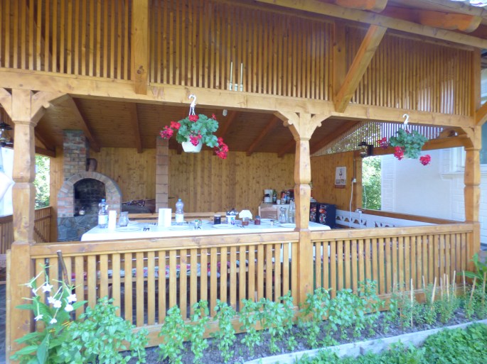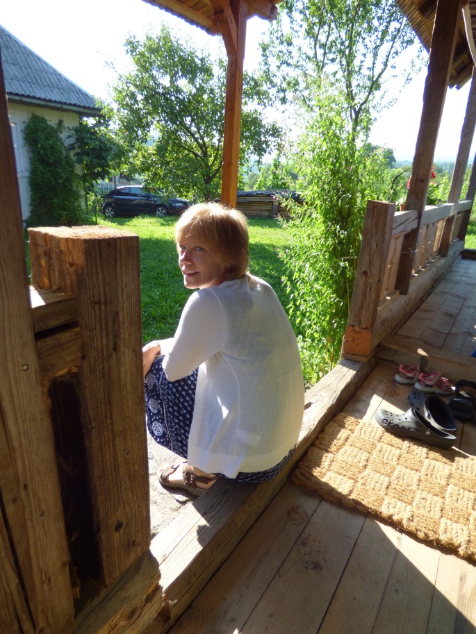 After talking for a short while, we were invited to dinner, which was served outside. Dinner was absolutely delicious! First there was ciorba, a traditional Romanian soup, which had meatballs in it, and bread. Then there was mamaliga (a cornmeal dish similar to polenta). After that there were sausages. And finally there was a dessert, which I sadly don’t remember as I was so stuffed by that point. Throughout the meal, there were also several toasts over horinca, a homemade vodka. Our hosts offered us three different kinds of horinca: apple, plum, and blueberry.