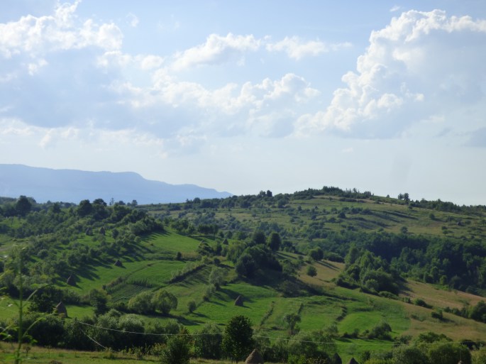 The following morning, we ate breakfast all together at the same table. This time, we had toast with homemade butter and jam, pancakes (stuffed with brinza, a homemade cow’s cheese, and plain), tea, coffee, and vegetables. Our hosts offered us horinca once again, but we all declined. Following breakfast, we packed up and headed on our way.