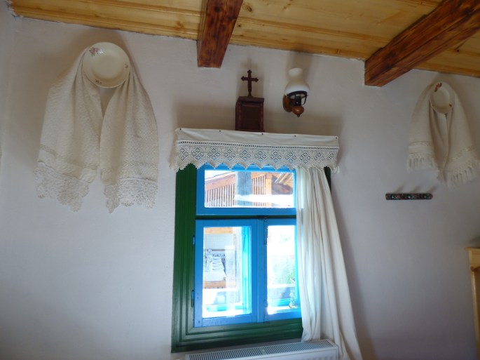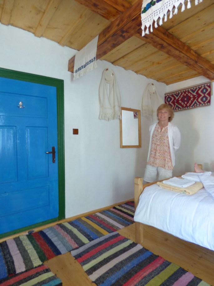 After spending our afternoon visiting some of the wooden churches, we headed to Breb, a small town further north. Here, we had booked a home stay at a small farm. The room was simple but clean and pretty, and the location was quiet and peaceful. I loved that the little “cabin” we stayed in had bright blue and green accents!