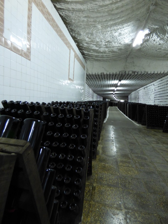 We joined a tour of the underground tunnels, which was on a trolley-like bus. The tunnels are colder than we expected, though we had been warned! Our guide told us about the various processes they use. We also watched a movie in a small cinema, where we got our first taste of Cricova sparkling wine (champagne). After our tour ended, we had a tasting with the large group we had toured with. We got to try several different kinds of wine and sparkling wines.