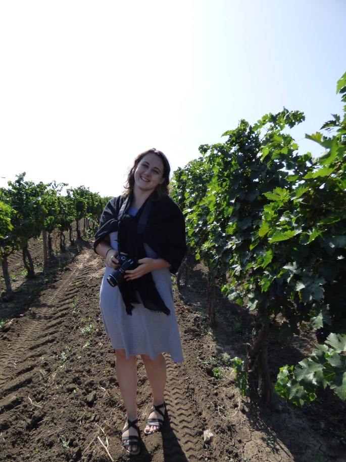 After walking through the fields to get from my village to the main road, we waited with my host mom, host sister, and host niece (they accompanied us on our walk) along the side of the road for the bus to come which would take us to the end of the road the winery was on. We didn’t know exactly what time it would reach us and we weren’t at a set station, so we kept an eye out so we could wave it down when it passed. Unfortunately for us, our location wasn’t ideal, as we were looking directly into a lowering sun while trying to make out small signs on rutieras and buses in order to know which one to signal to stop. So, after a long walk and waiting for nearly an hour, we were pretty disappointed (upset?) when we waved the rutiera down too late (we didn’t see the sign quickly enough) and it slowed down but didn’t stop for us. At that point, we were already half way there, we’d made reservations, it was too late in the evening to catch a different rutiera, and we were pretty dead set on actually going to the winery, so we shelled out some extra lei (Moldova’s currency) and called the taxi driver from my village to take us the rest of the way.