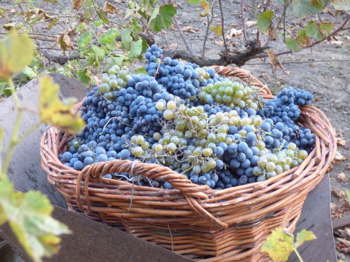 The grapes are picked by the bundle and any dried or damaged grapes are removed before the bundle is placed in buckets, which are then emptied in a large basket and wheeled home in a wheelbarrow. The grapes are then dumped in a large cone and a special apparatus crushes the grapes, which fall into the wooden barrel below. The grapes then ferment for a couple of days before they are further developed into wine. We’ll drink this wine throughout the upcoming year. Other grapes are used to create grape compote, which is a homemade juice.