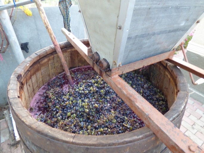 Day 43: I helped pick grapes, which sit in a basket waiting to be made into wine.Day 44: Another beautiful autumn sunset over the neighbors’ houses.Day 45: Grapes are crushed and begin to ferment at the beginning of the wine-making process.Day 46: Surprise autumn strawberries! My host mom called me and told me to come to the garden to pick strawberries and I was thoroughly perplexed until I saw these growing.Day 47: Grapes ferment in barrels in our courtyard.Day 48: A group of teachers at school with the flowers we received for Ziua Profesorului (Teacher’s Day).Day 49: Teacher’s Day celebrations continue. Our entire faculty poses with the 8th grade students, who put on a lovely concert for us.