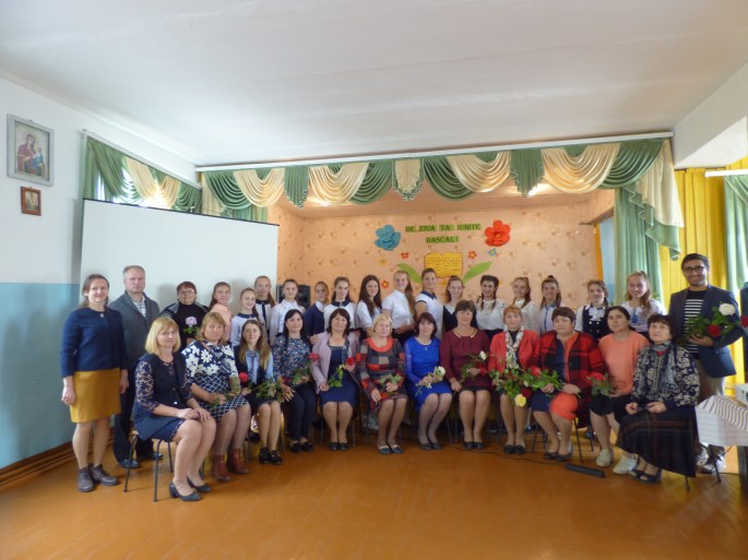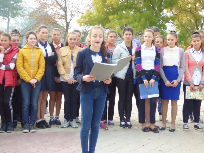 October 5 is International Teacher’s Day, and here in Moldova it’s a very big holiday (read about last year’s celebration here). At our school, we started the day off with a short assembly outside in the school’s courtyard. One student from each class presented their wishes for the teachers and thanked them for the work they do.