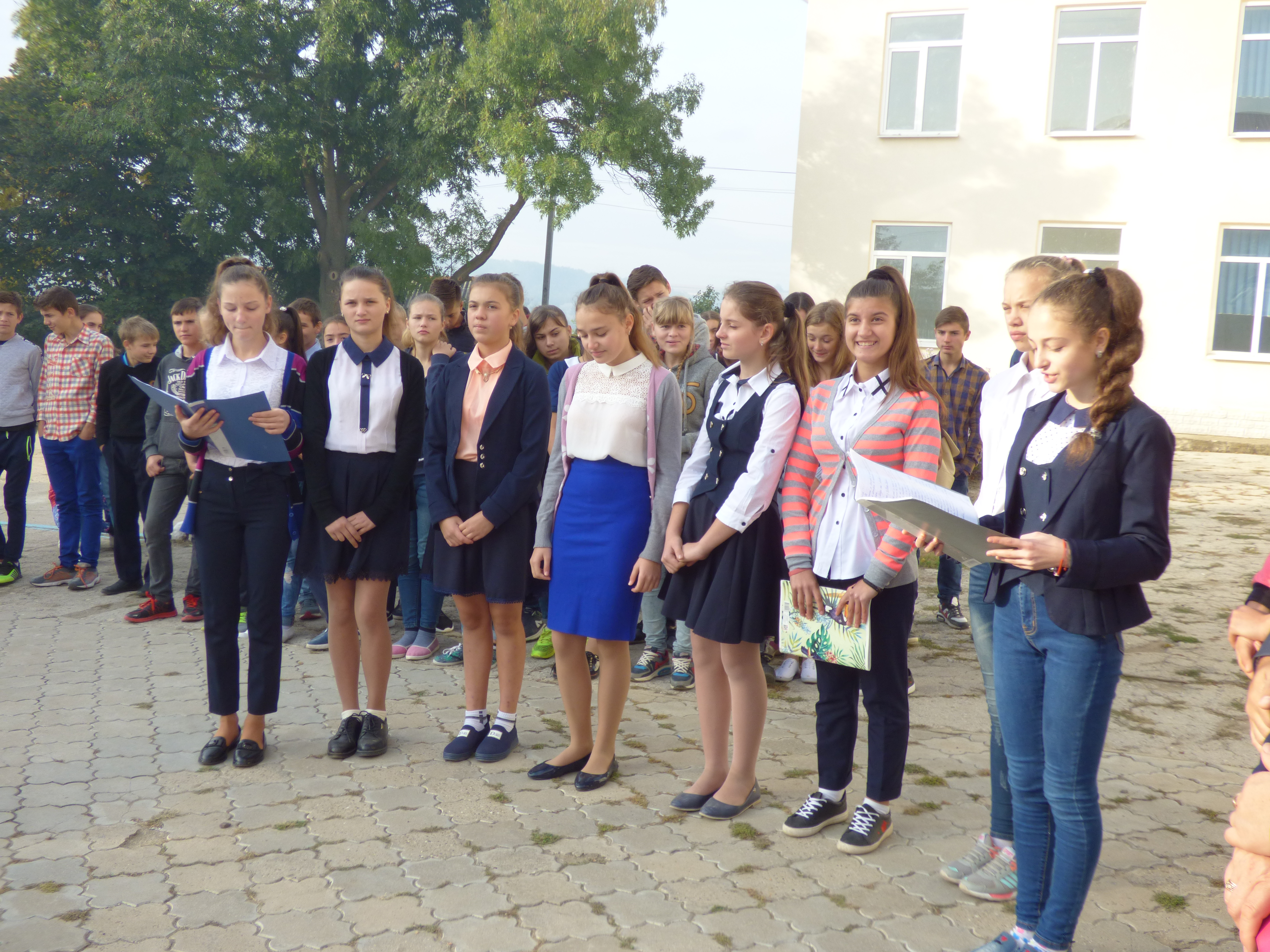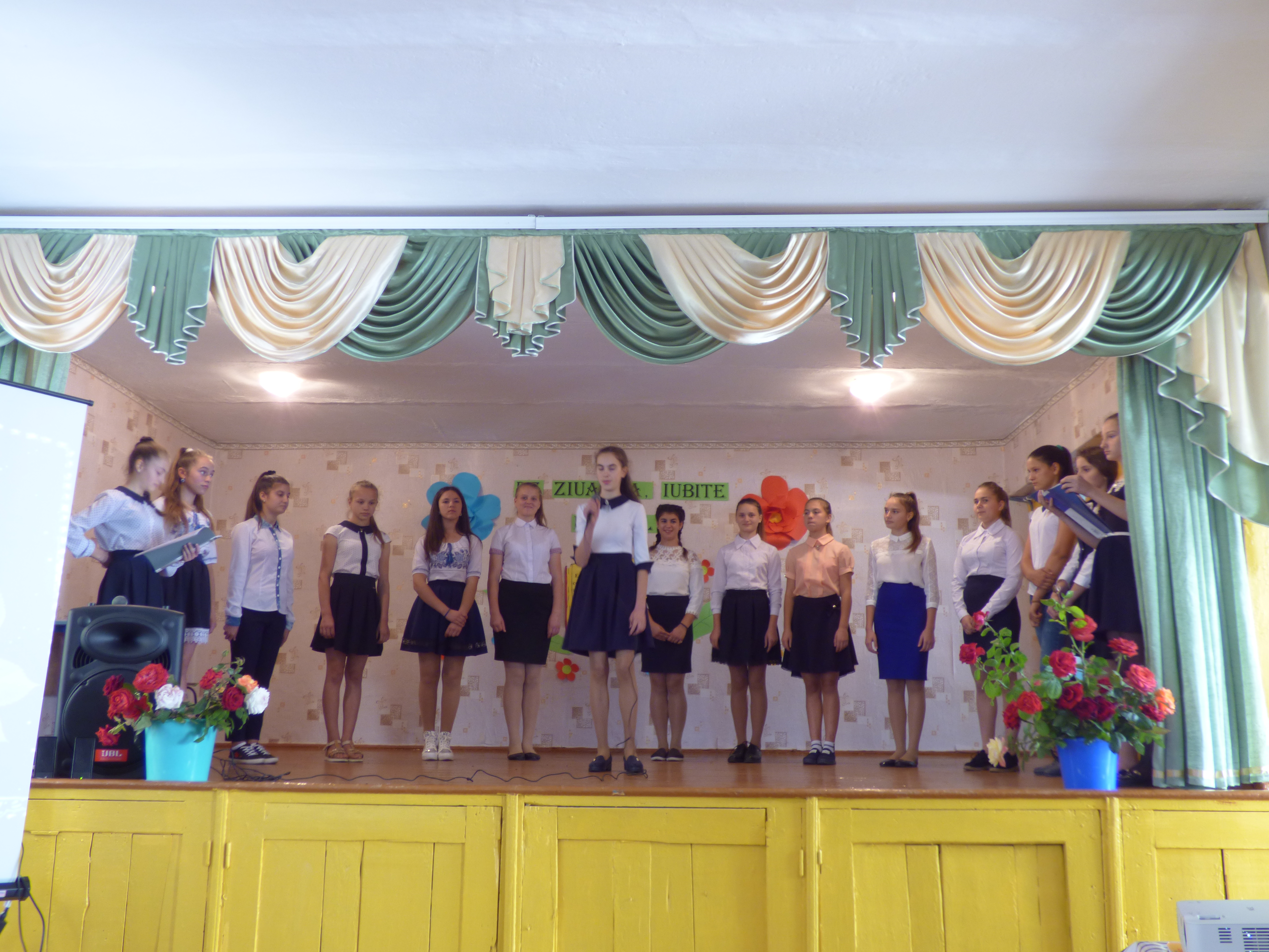 October 5 is International Teacher’s Day, and here in Moldova it’s a very big holiday (read about last year’s celebration here). At our school, we started the day off with a short assembly outside in the school’s courtyard. One student from each class presented their wishes for the teachers and thanked them for the work they do.