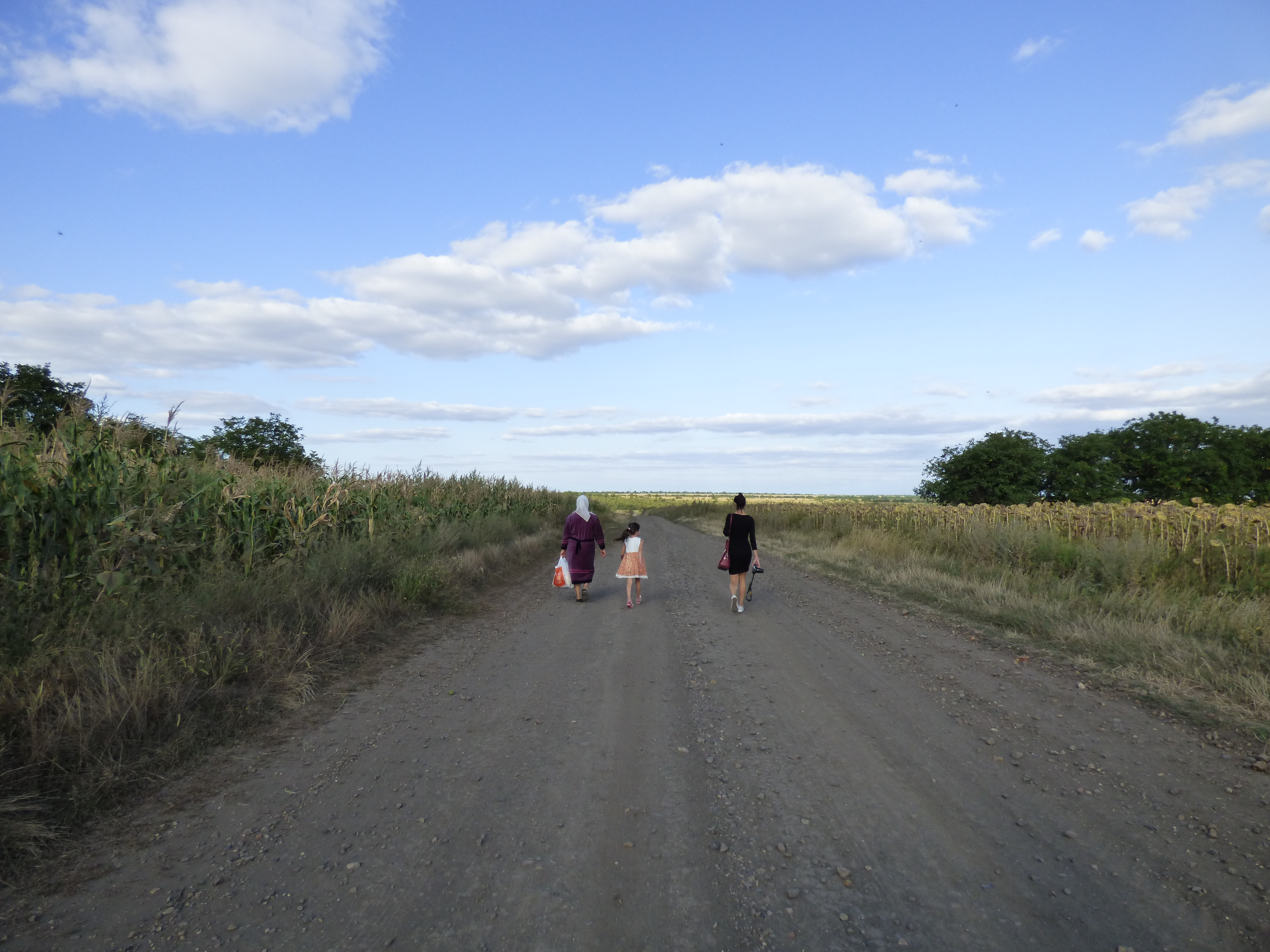Walking through the fields. In August, right before the first day of school, I walked through the fields on the margin of my village with my host mom, host sister, host niece, my sister, and a fellow volunteer. It was such a beautiful day and it was such a nice escape into nature before the school year started again.