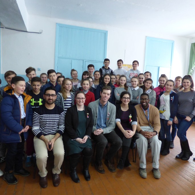 Day 15: We had a full schedule of events for Peace Corps Week at our school this year! We had a mini film festival with volunteer videos from across the world, video-chatted with a class in the U.S.A., and welcomed three other Peace Corps volunteers to our school to talk about where and what home means to them. It was a really fun, interesting week and the students really enjoyed it! (March 2018)Day 14: For International Women’s Day, my village had a concert at our Casa de Cultura, with performances by some of our students, the local dance ensemble, a professional orchestra, and several well-known Moldovan singers. The dance ensemble, made up of students in 7th through 10th grades, performed a new dance, which was really beautiful (pictured here). (March 2018)Day 13: One of my favorite Moldovan holidays is that of “Mărţişor”. This holiday occurs on the first day of spring, which is celebrated on March 1st. People give each other these red-and-white amulets, called “mărţişoare”. They celebrate the coming of spring and are wishes of good luck. At the end of March, they hang the amulets on a budding tree. (March 2018)Day 12: Each spring, a week or two before Easter, spring cleaning occurs in every household and around the village. School ends a bit early on one day and all the students, accompanied by their teachers, clean up the village in preparation for the Easter holiday. Each class is assigned a different part of the village, where they pick up garbage, rake up any leaves remaining from the autumn, and whitewash the tree trunks. (April 2018)Day 11: I celebrated Easter in my village once again this year. My host dad and I joined my host mom at the church at 4:00 in the morning, and we gathered with everyone along the roads surrounding the church with baskets full of meat, special Easter breads, and red-dyed eggs. The priest then went around, blessing each person and each basket by splashing water on them. After, we returned home (it was still fairly dark out) and broke the Easter fast by eating the food from the basket and drinking a glass of wine before going back to sleep. (April 2018)