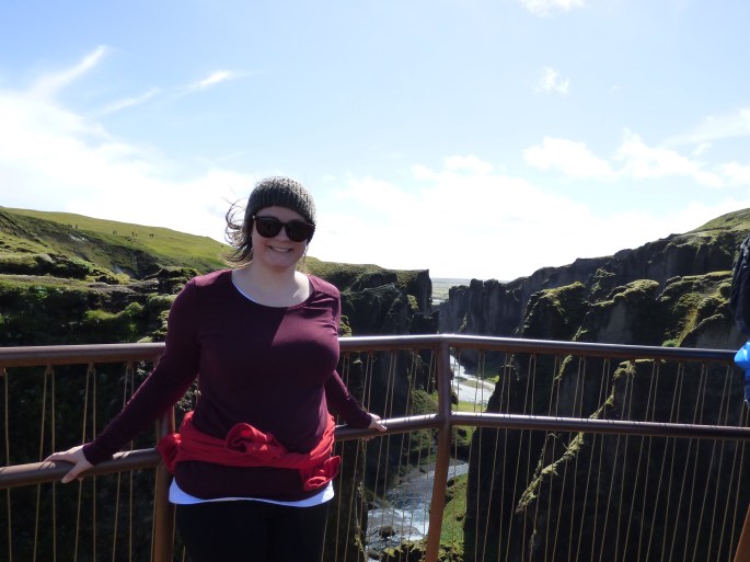 From Reynisfjara, it was about an hour drive to our next destination. Fjadrargljufur Canyon is a less-visited spot but is easily accessible from the main road. It is a canyon largely covered in green grass and moss and the views were amazing! I thought there was an hour-long hike here, but we either missed the hiking trail or my information was flawed. Instead, we followed the path that led along the top of the canyon. It was a really pretty walk, though it was very windy! This was one of the few sunny days of our trip, so we really enjoyed the gorgeous weather despite the wind.