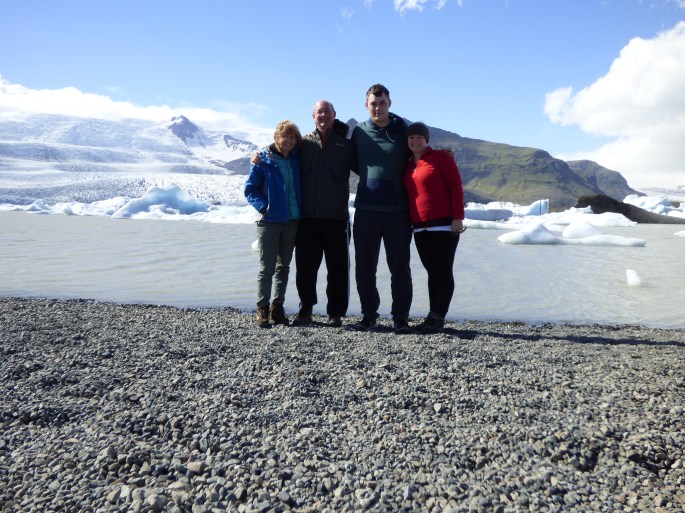 After an hour or so at the canyon, we drove about two hours to Fjallsarlon Lagoon. This is a smaller version of the more famous Iceberg Lagoon. We walked along the water edge looking at the various icebergs that stick out of the water. It was still sunny and somewhat warm out, so we laid on the warm rocks on the beach for a while soaking up the sun. While definitely smaller than the Iceberg Lagoon (named Jokulsarlon), we really enjoyed our time there. The icebergs are so incredibly gorgeous, and it wasn’t crowded at all!
