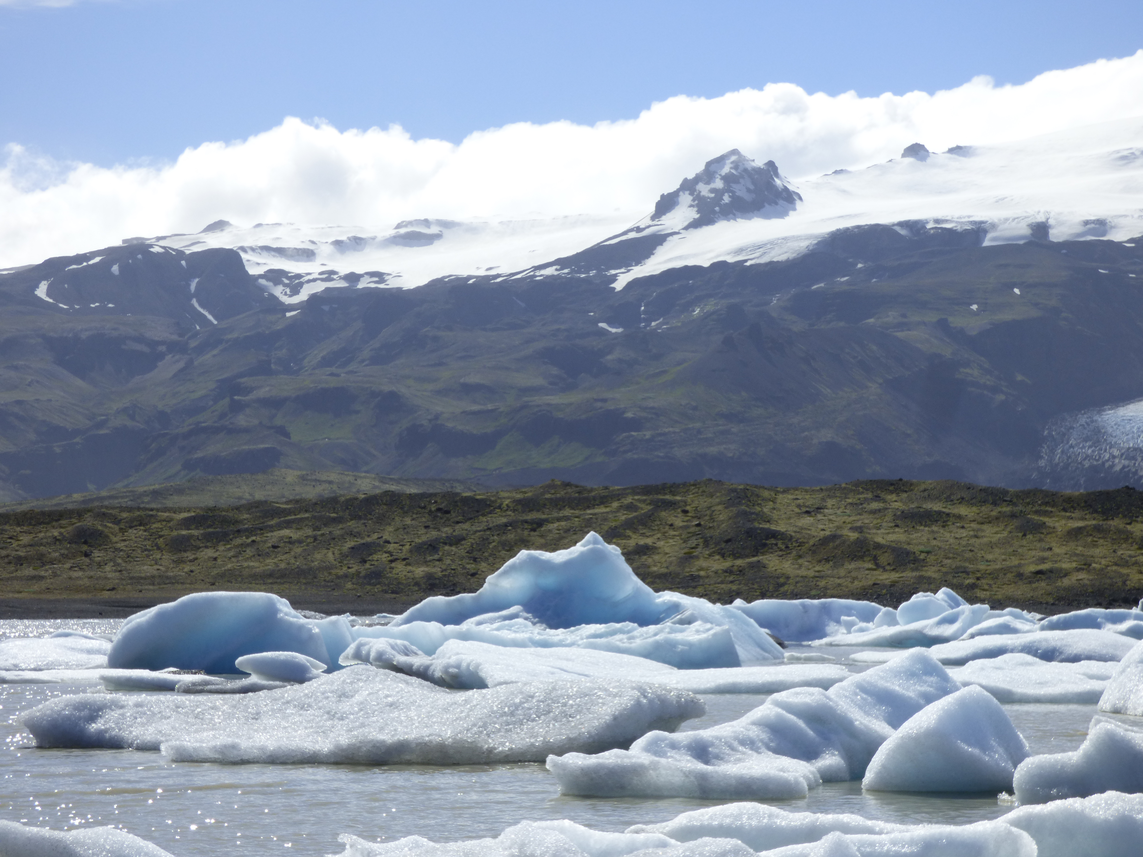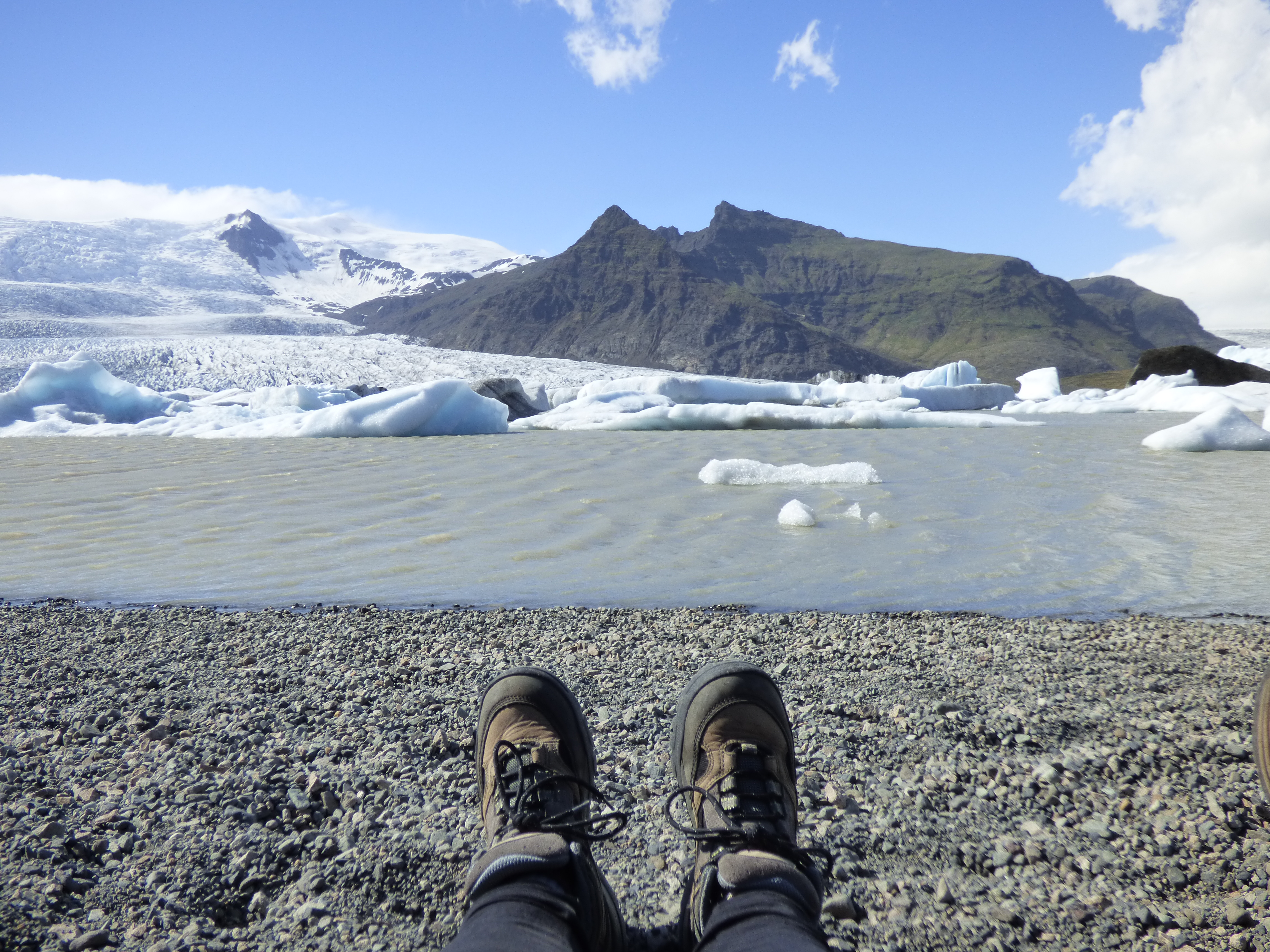 After an hour or so at the canyon, we drove about two hours to Fjallsarlon Lagoon. This is a smaller version of the more famous Iceberg Lagoon. We walked along the water edge looking at the various icebergs that stick out of the water. It was still sunny and somewhat warm out, so we laid on the warm rocks on the beach for a while soaking up the sun. While definitely smaller than the Iceberg Lagoon (named Jokulsarlon), we really enjoyed our time there. The icebergs are so incredibly gorgeous, and it wasn’t crowded at all!