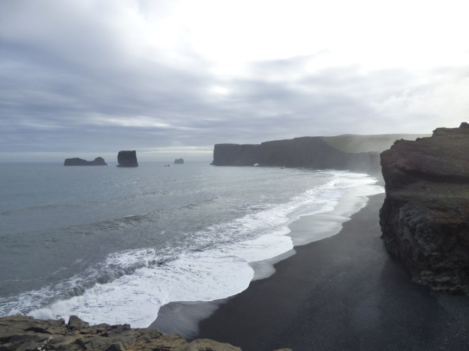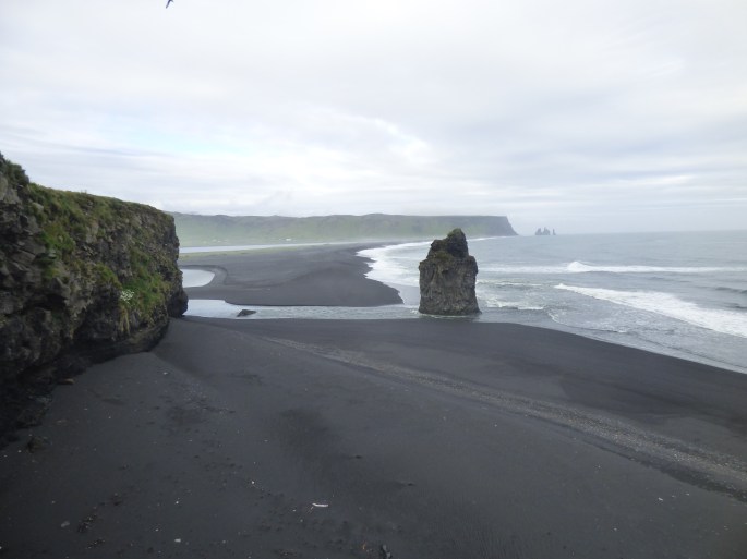 From Jokulsarlon, we drove back along the coast further until we reached the small town of Vik. Along the way, we passed miles and miles of lava fields covered with moss. We had hoped to take the 4:00 ferry over to Westman Islands, but waited too long to book our tickets and therefore the only tickets available were for the tickets at 10:00 in the evening, so we had a lot of time to kill before our ferry ride. We stopped in Vik, which for some reason I thought was a larger town/city but in actuality is very small. We stopped at a gift store and restaurant that was also an information center to find some activities in the area to do. The woman there showed us a map with the main attractions, most of which we had already done before we headed further east along the coast. There was one place we hadn’t been yet, though, and she highly recommended it, so we made plans to go there after we ate dinner (first meal eaten out so far in the trip!) at the attached restaurant.