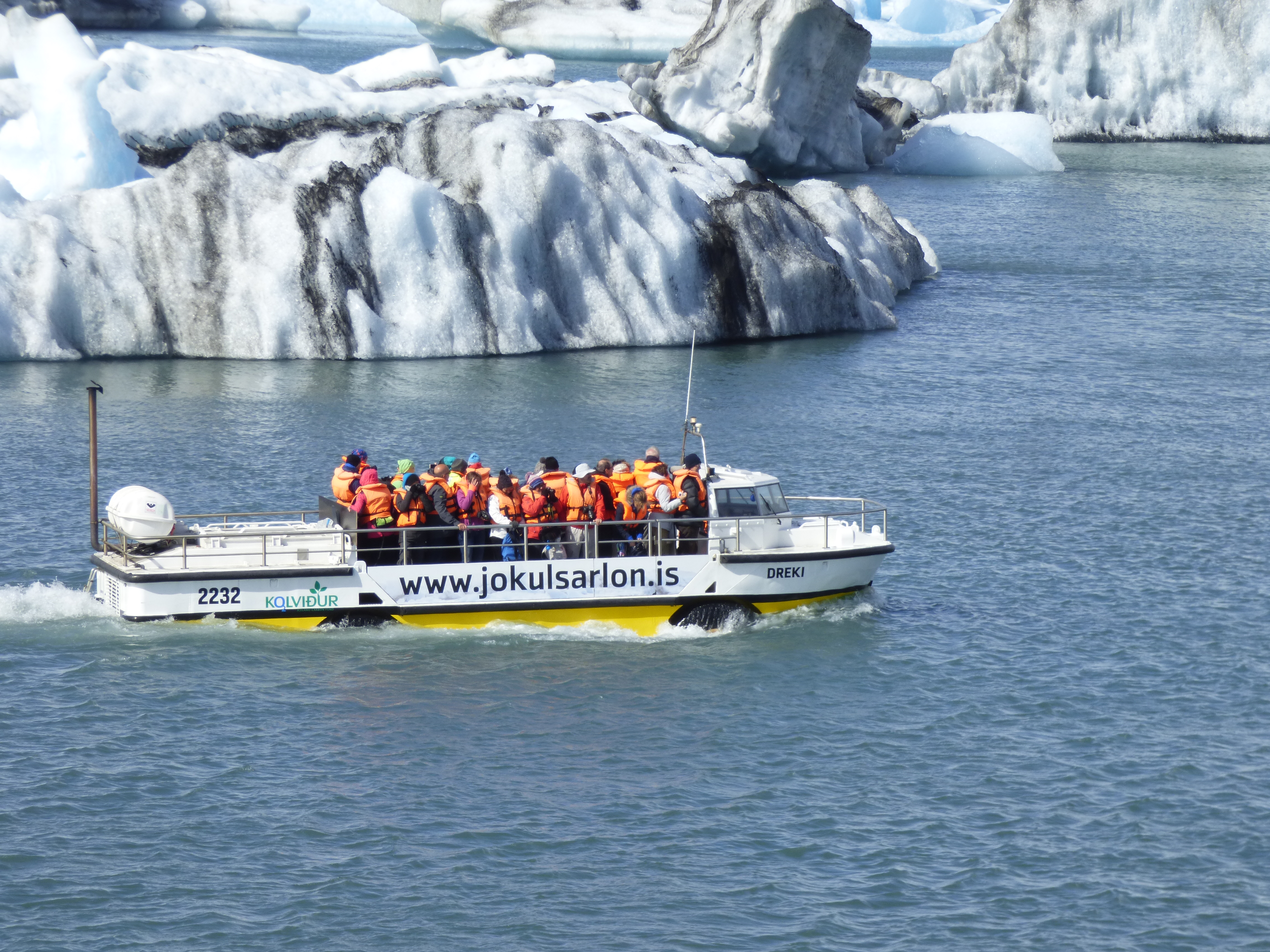We had purchased tickets in advance for an amphibian boat tour, so after walking around we boarded the boat. There are multiple options for boat tours and while some of the options allow you to get really close to the icebergs (like close enough to touch), the amphibian boat tour still gets quite close and is the less expensive choice. The boat took us around the lagoon and our guide shared information about how the icebergs form. We even got to taste part of an iceberg which was 10,000 years old! Our guide joked he hoped it was the oldest thing we had ever eaten. We enjoyed the boat ride and would definitely recommend it- but dress warmly because it can get quite windy and cold!