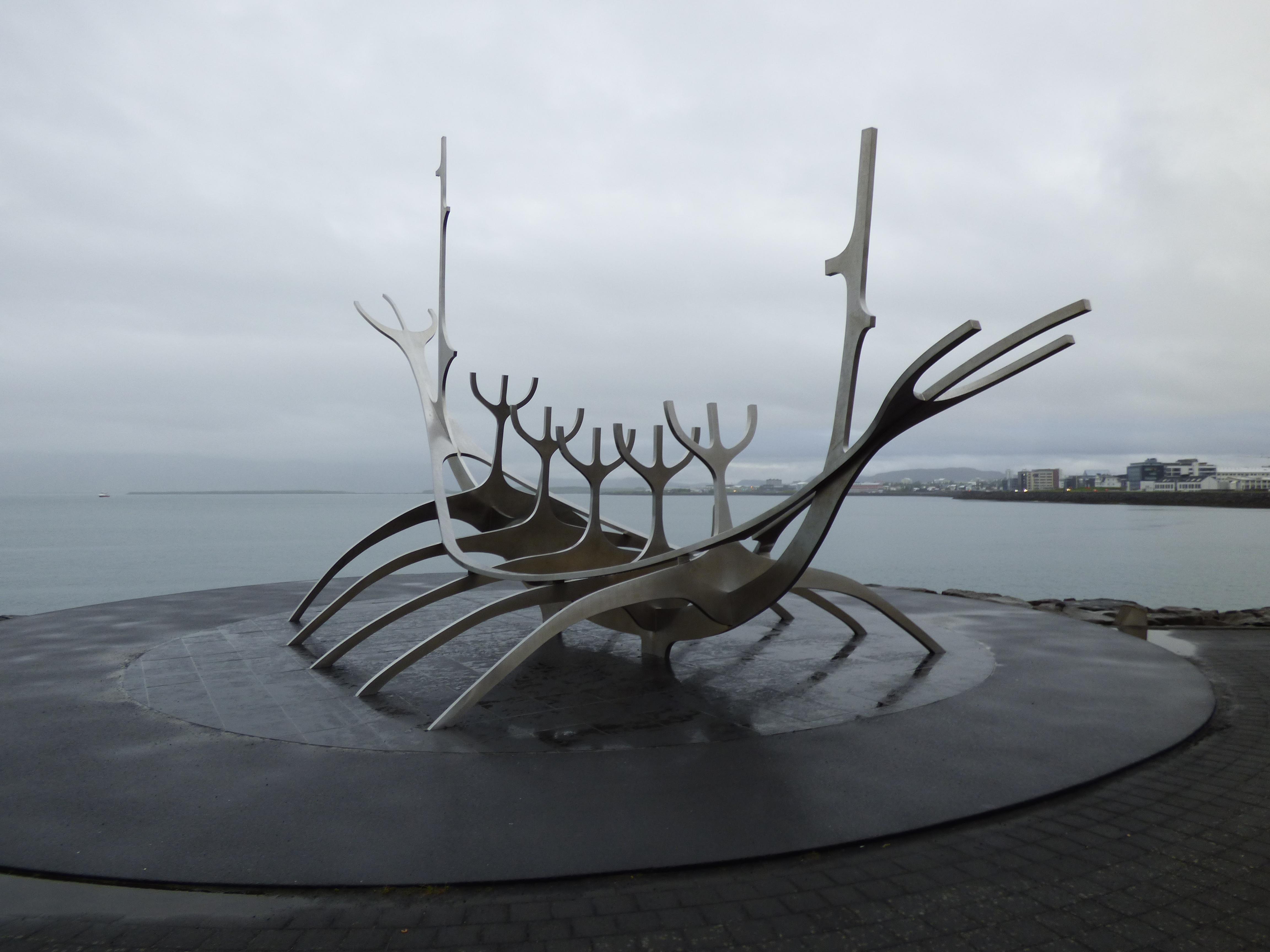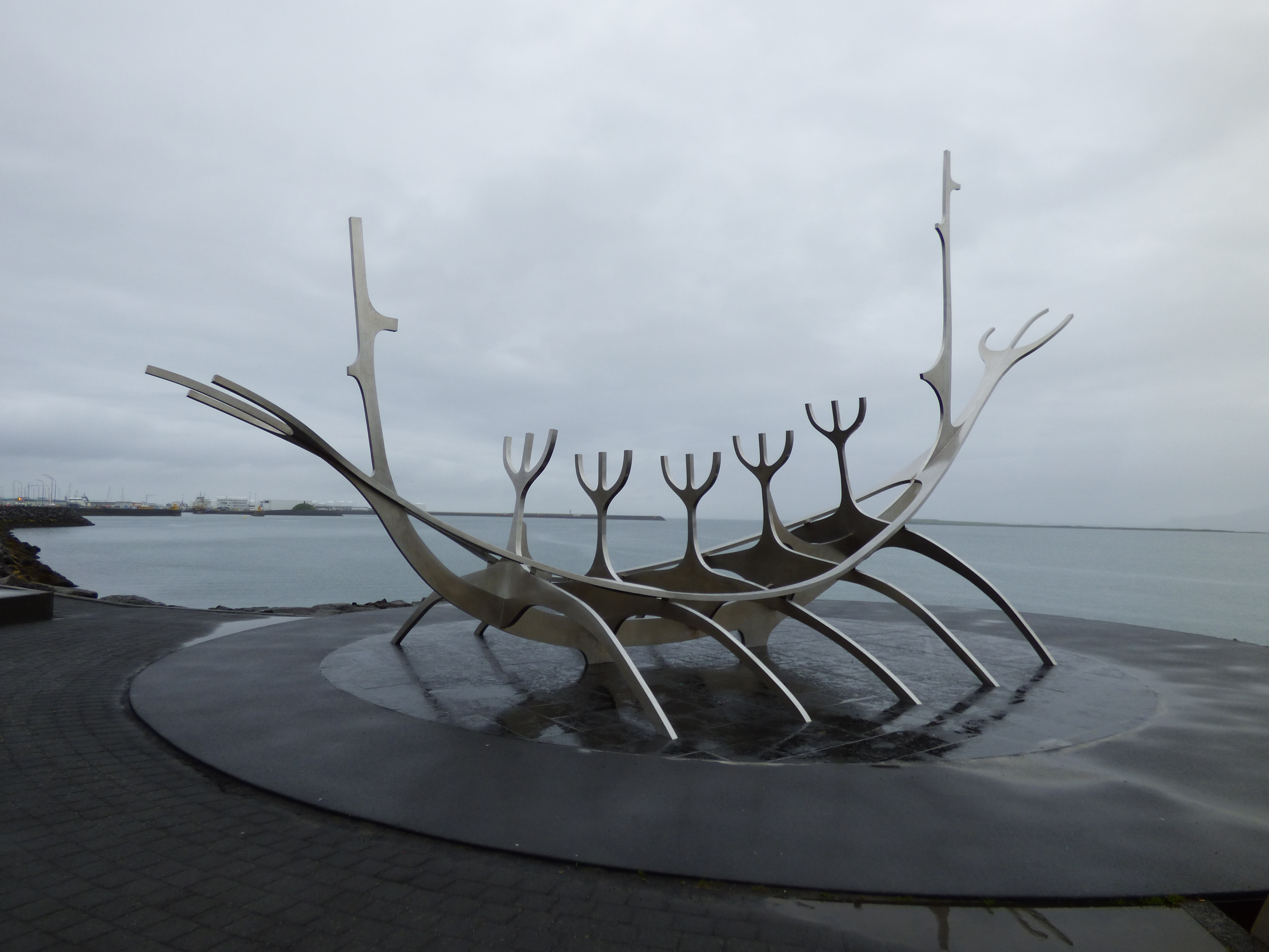 Before heading out, we drove by the Sun Voyager sculpture, which is called Solfar in Icelandic. This massive steel sculpture is found along the coast with views of the ocean beyond, and was revealed in 1990. The artist, Jon Gunnar Arnason, said that is both a dream boat and an ode to the sun. It is certainly a gorgeous sculpture.