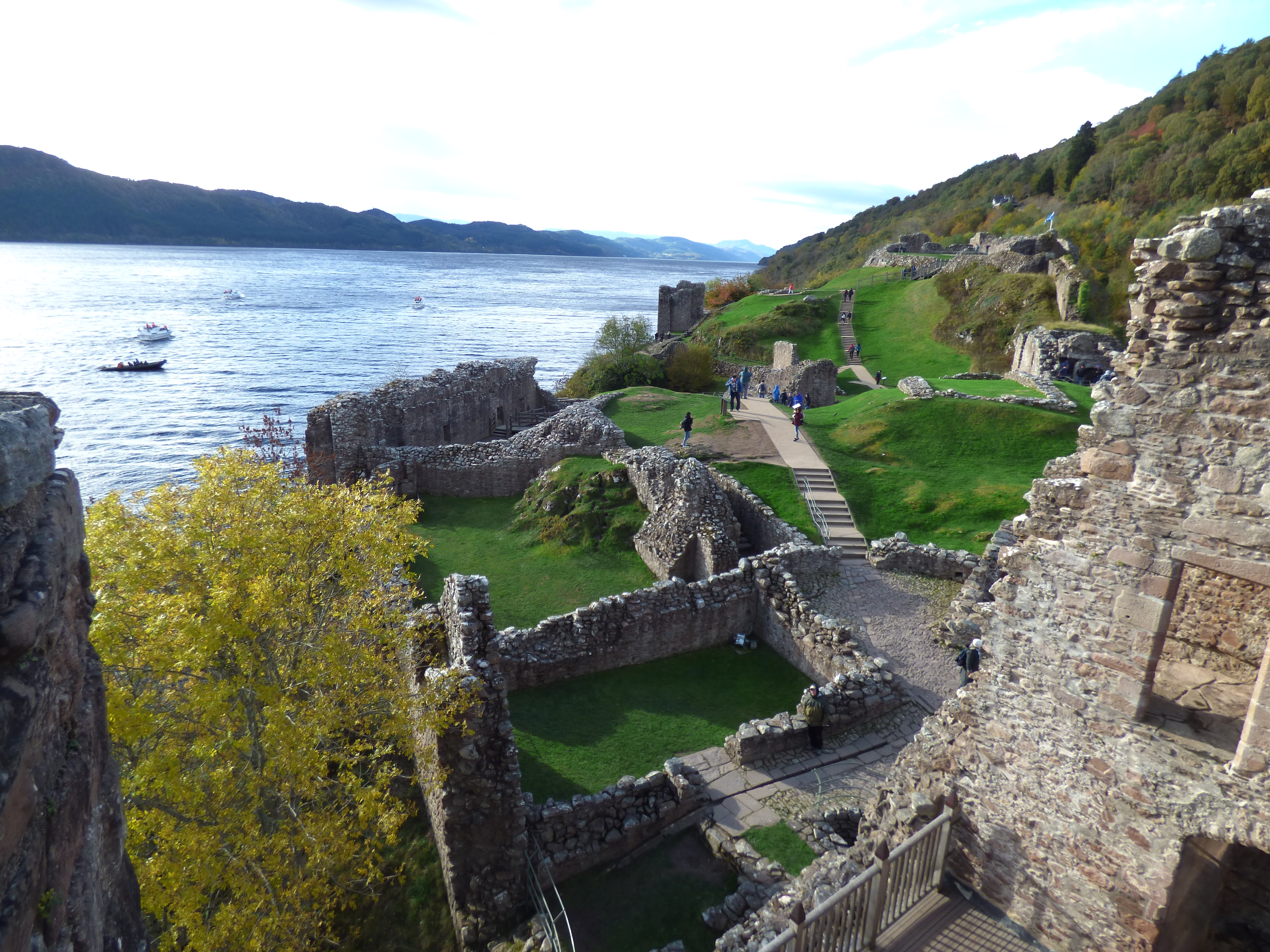 Everyone in our tour group decided to do the boat ride over Loch Ness to Urquhart Castle, which we then explored. Urquhart Castle is now in ruins and the present ruins were built between the 1200s and 1500s. Despite being a ruin, some walls still exist and one can imagine how beautiful it must have been in the past. There is detailed information telling about the various functions the rooms would have had and an informative video in the information center. Despite being a ruin, I highly recommend a visit to the castle.