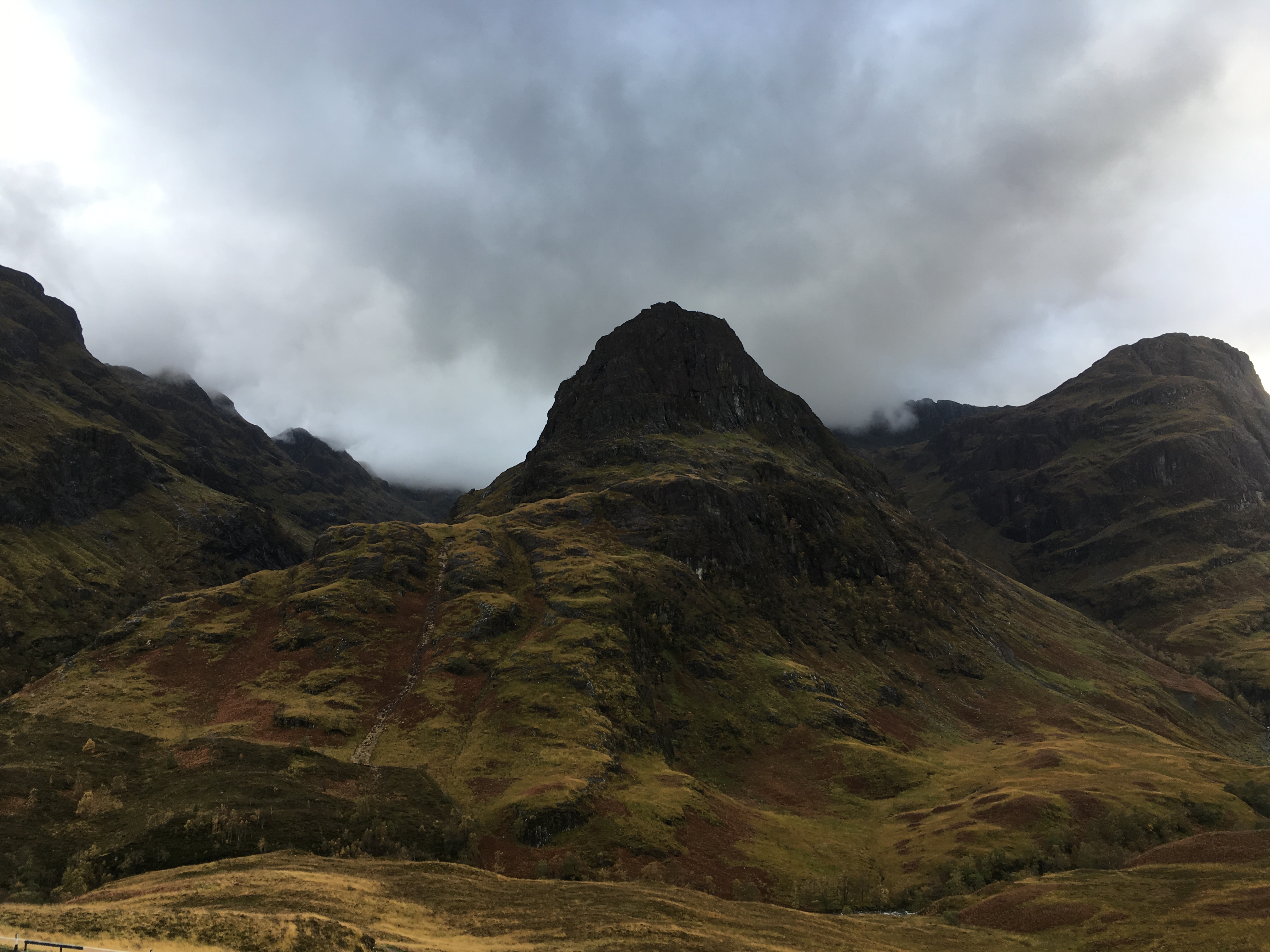After lunch in Fort William, we drove on towards Glen Coe, which is arguably one of the most stunning areas in the Highlands. We drove long stretches without seeing any buildings or houses, and stopped at a couple of locations to take in the views. Because it was fall, the hills and mountains were quite orange in brown in color, but still gorgeous.