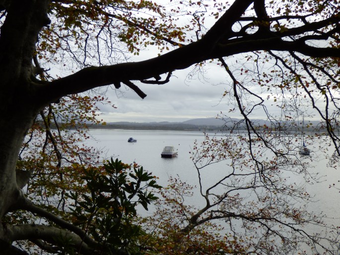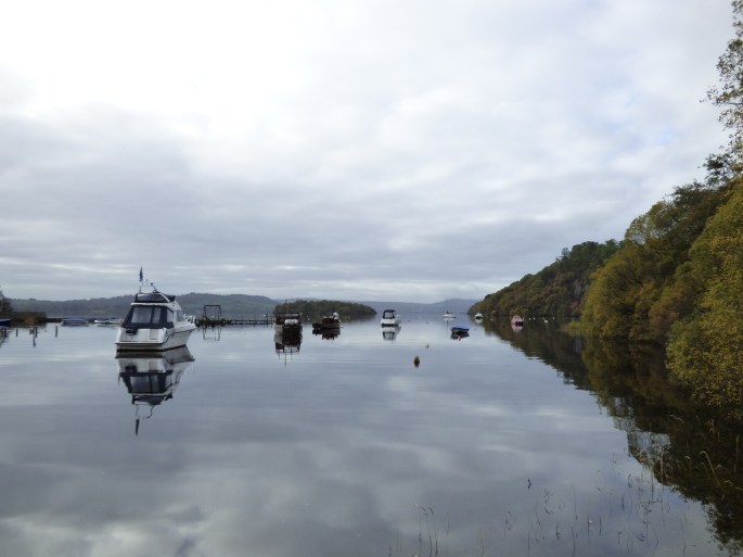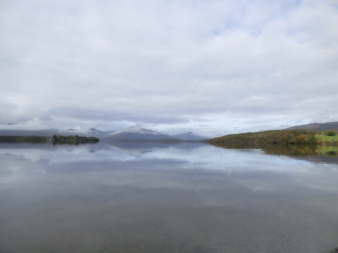 From Stirling, we went on to Loch Lomond, stopping near Aberfoyle. From where we parked, there was a trail that led along the lake and then some stones that led up a hill. Our tour guide took several of us up that hill, where there were stunning views of the lake below. It was a slightly overcast morning, but we could see the lake quite well. It was so peaceful! After enjoying the view from the top, we walked down the hill and then had time to enjoy the peaceful lake and walk around as we wished.