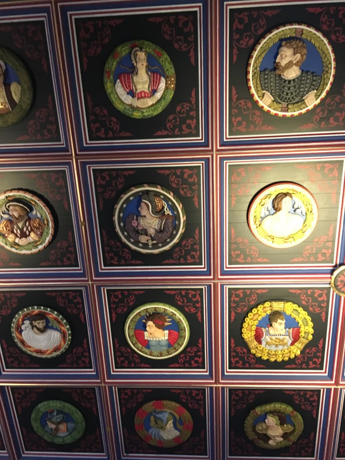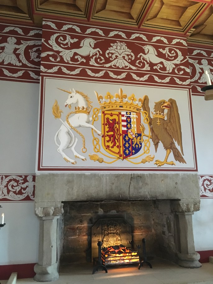 We went back to Stirling, and had a couple of hours to explore the castle. Stirling Castle is one of the largest and most important castles in Scotland. The castle dates from the 1100s, but most of the current buildings were built between the late 1400s and 1600. Built atop a crag and surrounded by steep cliffs on three sides, it had a strong defensive position and guarded a key crossing of the River Firth. Although it is a fortress, it has been used as a favored royal palace for centuries of Scottish kings and queens. Mary Queen of Scots was crowned here, as well as several other kings and queens, while others were born here.