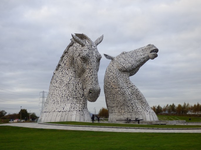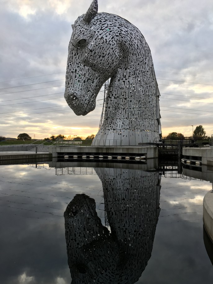 After walking around Stirling Castle, we headed back to Edinburgh, stopping for a bit at The Kelpies, massive metal sculptures just outside of Edinburgh. Keplies are mythological creatures from Scottish lore. Though they look like magnificent horses, according to lore if you get on the back of a kelpie, they will drag you into the water and eat you! These sculptures are also an homage to the strong workhorses that were a critical part of Scotland’s industrial past.