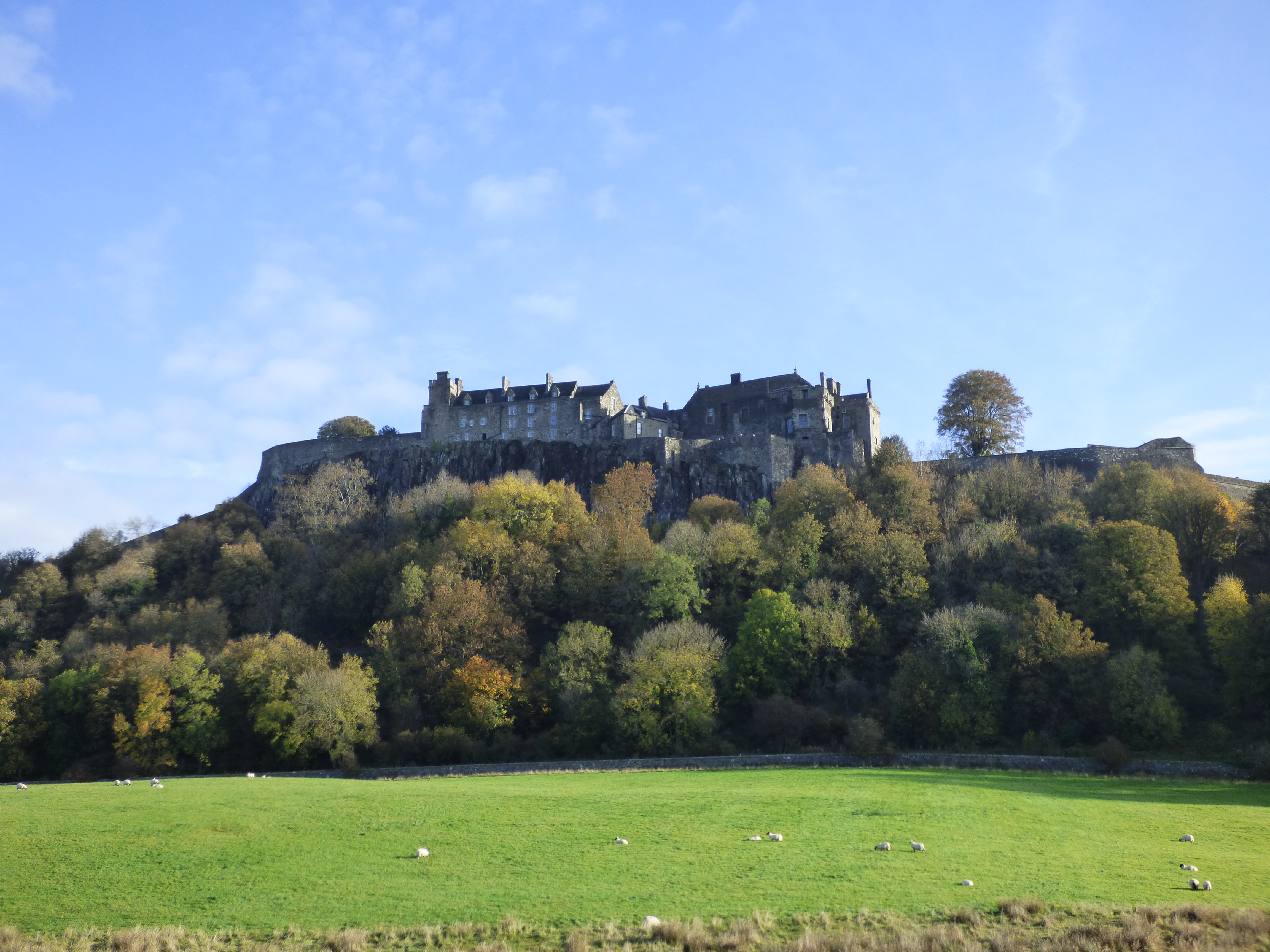 The weather forecast was looking good in the morning but rainy later in the day, so our tour guide rearranged the schedule a bit to give us decent weather while we were at Loch Lomond. We therefore started out by going to Stirling, but just stopping below the castle to take in the views, then returned later in the day to visit the castle. The sun was shining and the grass was very green below the castle.