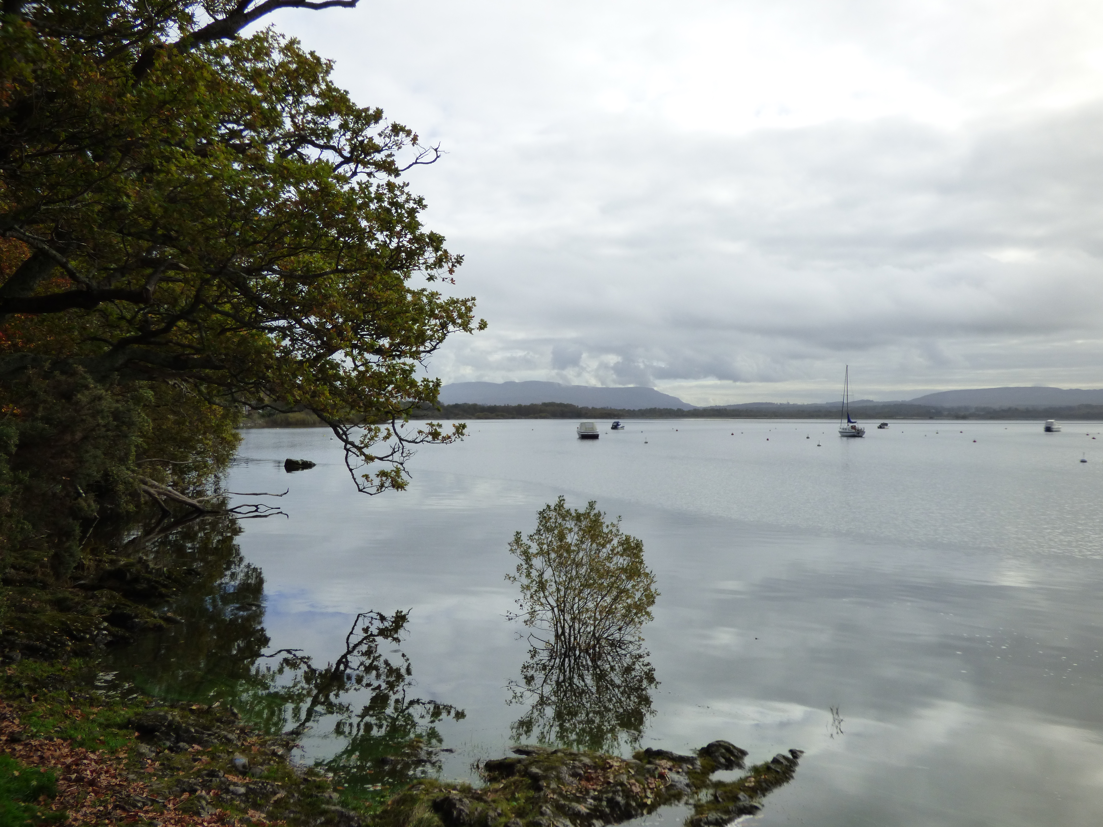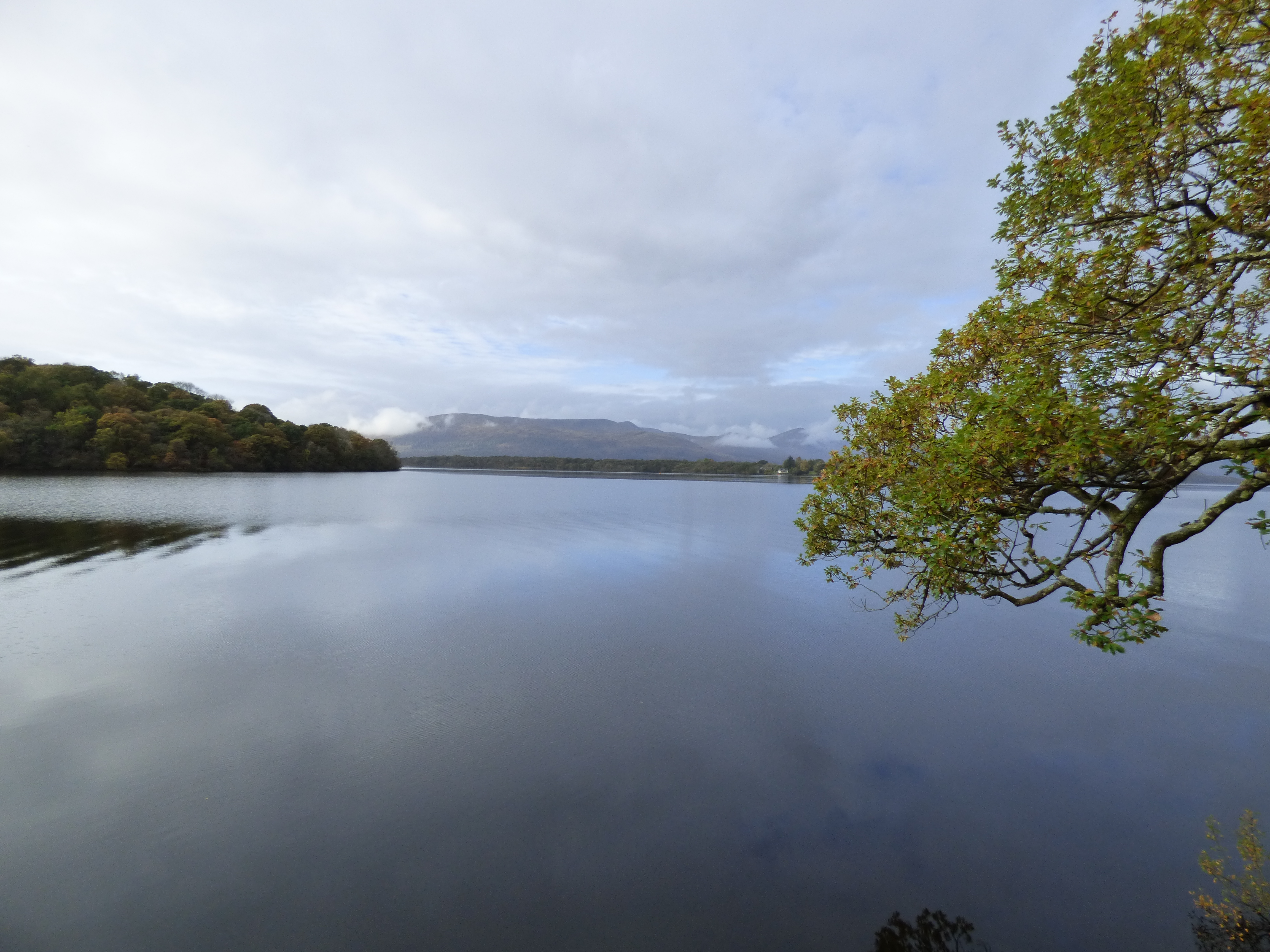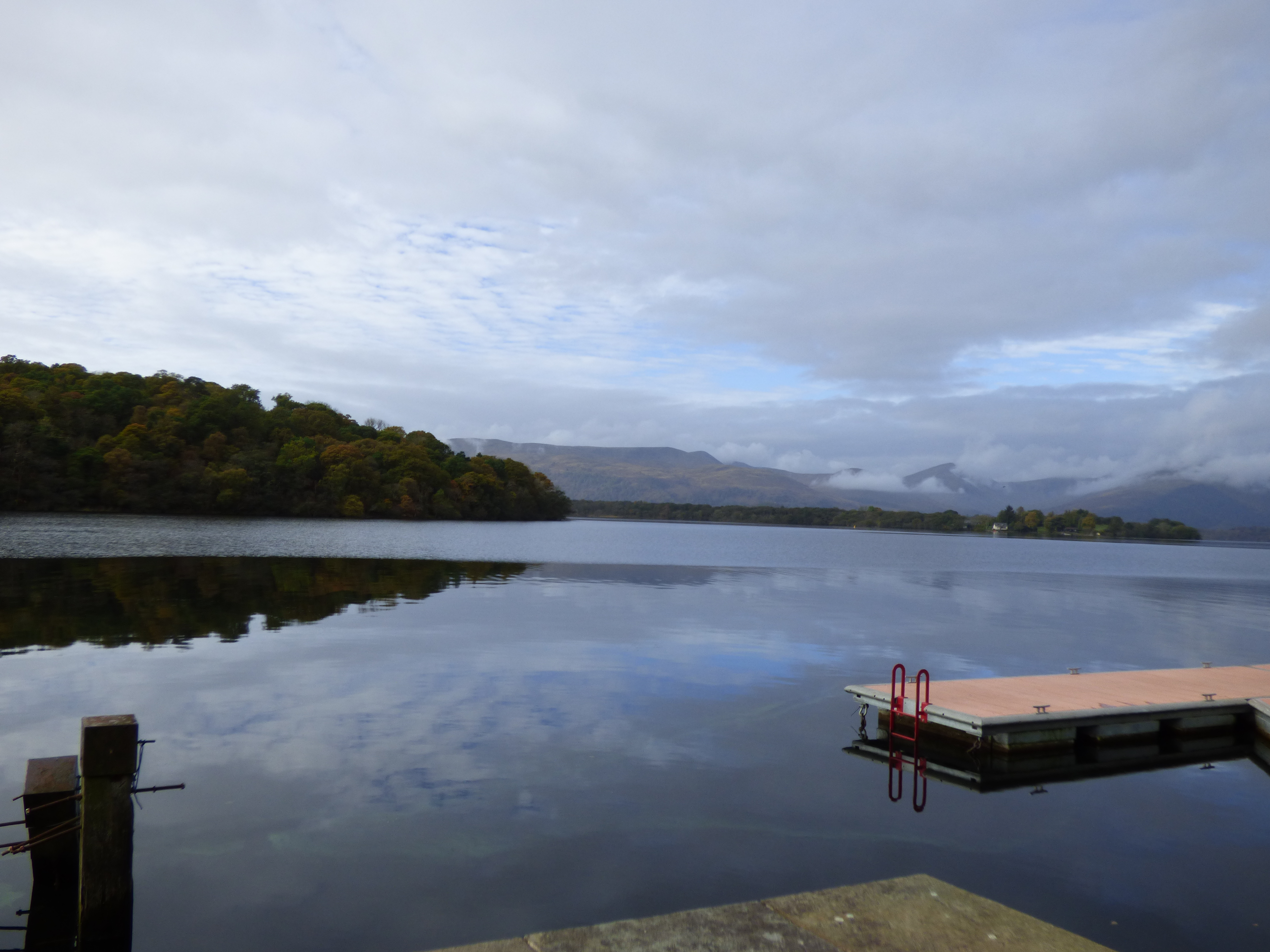 From Stirling, we went on to Loch Lomond, stopping near Aberfoyle. From where we parked, there was a trail that led along the lake and then some stones that led up a hill. Our tour guide took several of us up that hill, where there were stunning views of the lake below. It was a slightly overcast morning, but we could see the lake quite well. It was so peaceful! After enjoying the view from the top, we walked down the hill and then had time to enjoy the peaceful lake and walk around as we wished.